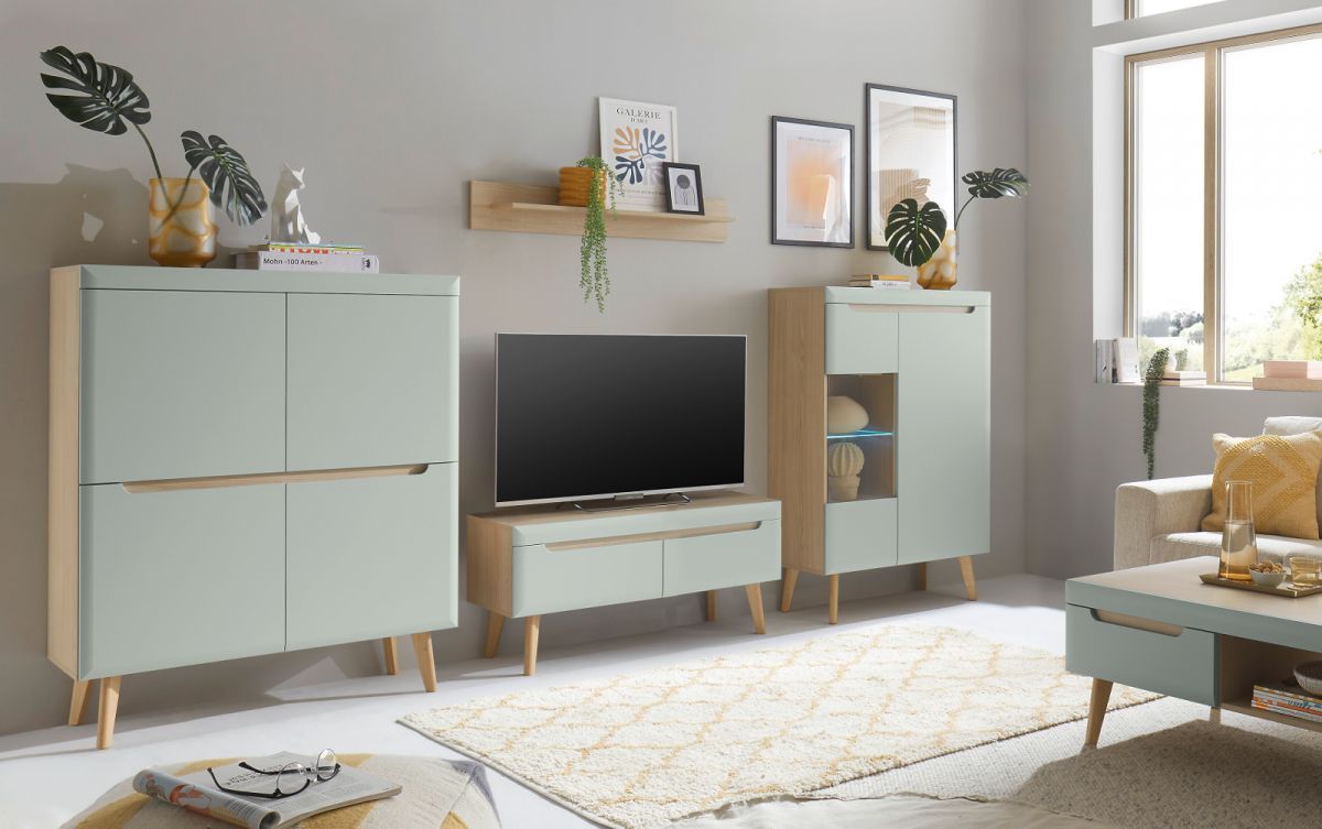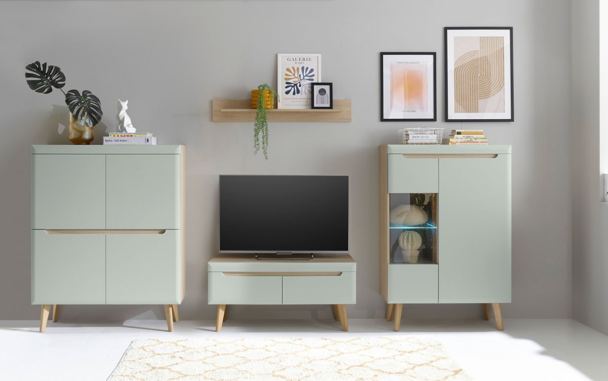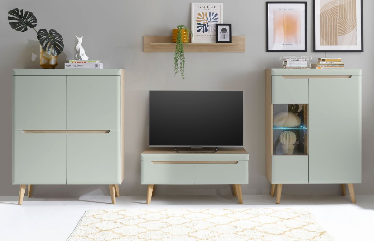 Wohnwand Pistazie Eiche Wohnzimmer Schrankwand Isgard Wohnkombination 4-tlg. 344 cm