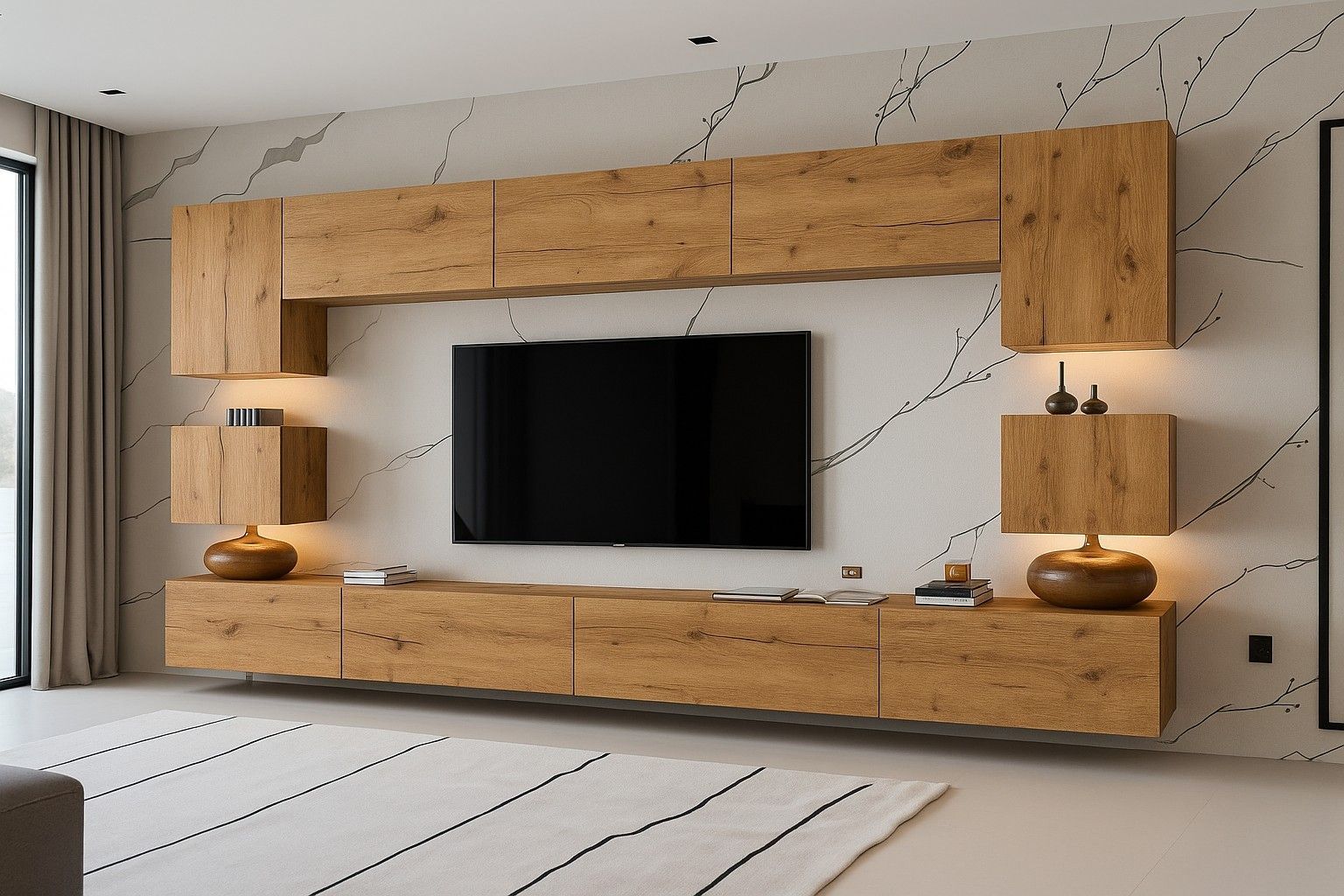 zu unserem Shop Verkäuferprofil Bewertung Newsletter Kontakt Startseite Zahlung Versand Rücknahme Über uns Kontakt Wohnwand RIVA Wohnwand RIVA – Farbe Gold Craft Eiche – Stilvoll. Funktional. Nachhaltig. Stellen Sie sich ein Wohnzimmer vor, das Wärme, Gemütlichkeit und moderne Eleganz au