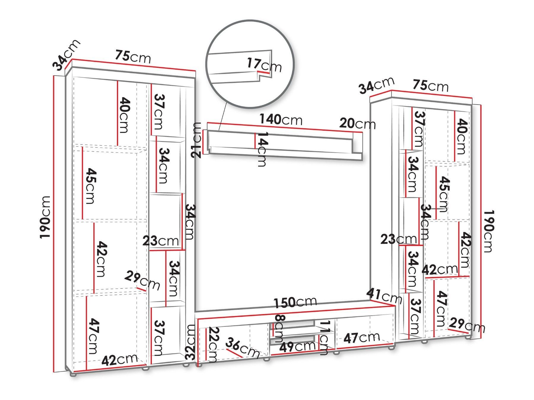 Wohnwand Roomba XL Schrankwand Anbauwand Wohnzimmer-Set Modern Wohnmöbel M24