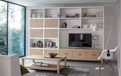 Wohnzimmer Set Modern Holzmöbel Wohnwand Wandregal Regale TV-Lowboard