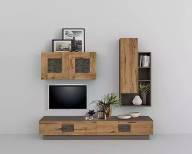 Wohnwand TV-Ständer Wohnzimmer Set 4tlg Wohnmöbel Modern Wohnzimmer Holz