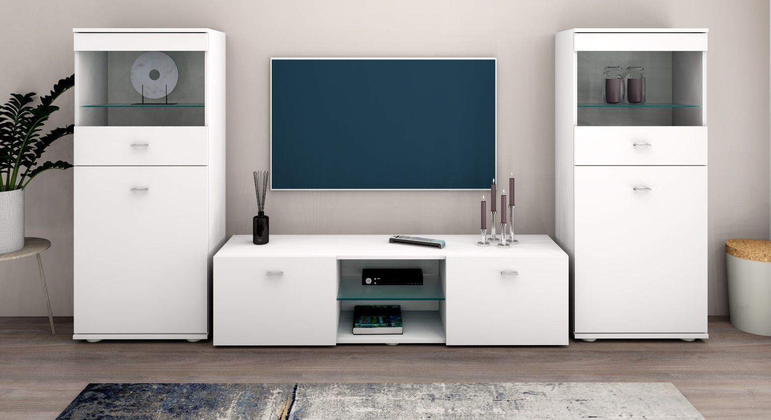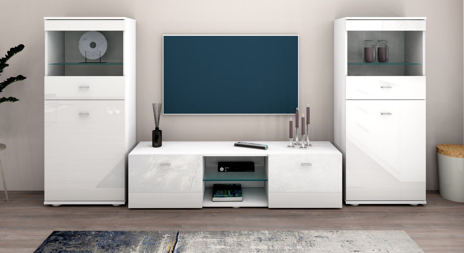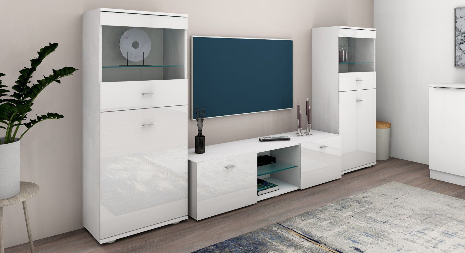 Wohnwand "Scala" Lowboard TV Board Möbel Vitrine Fernsehwand Weiß Hochglanz