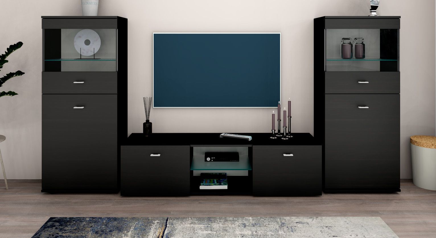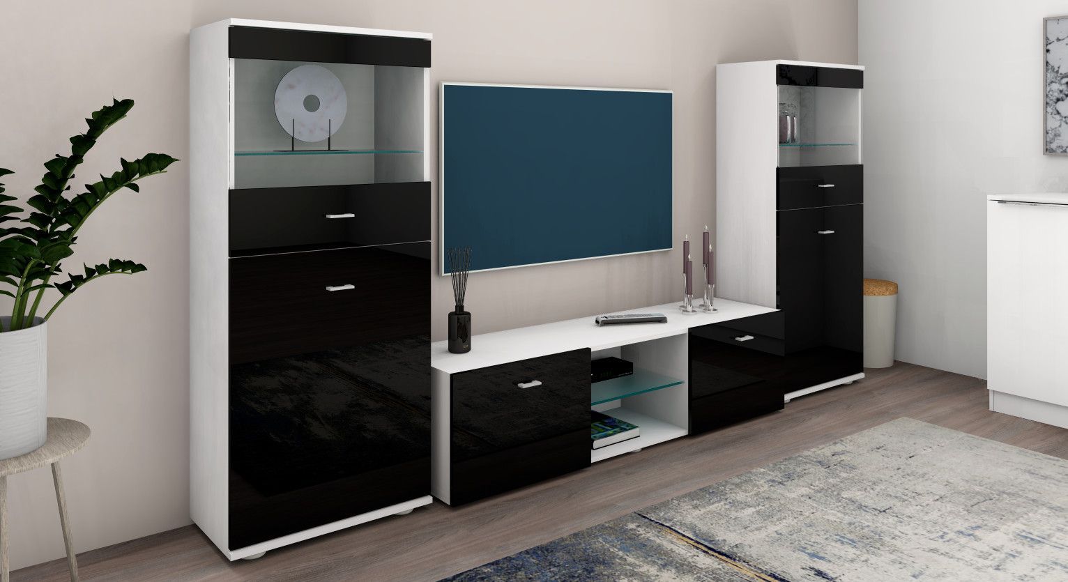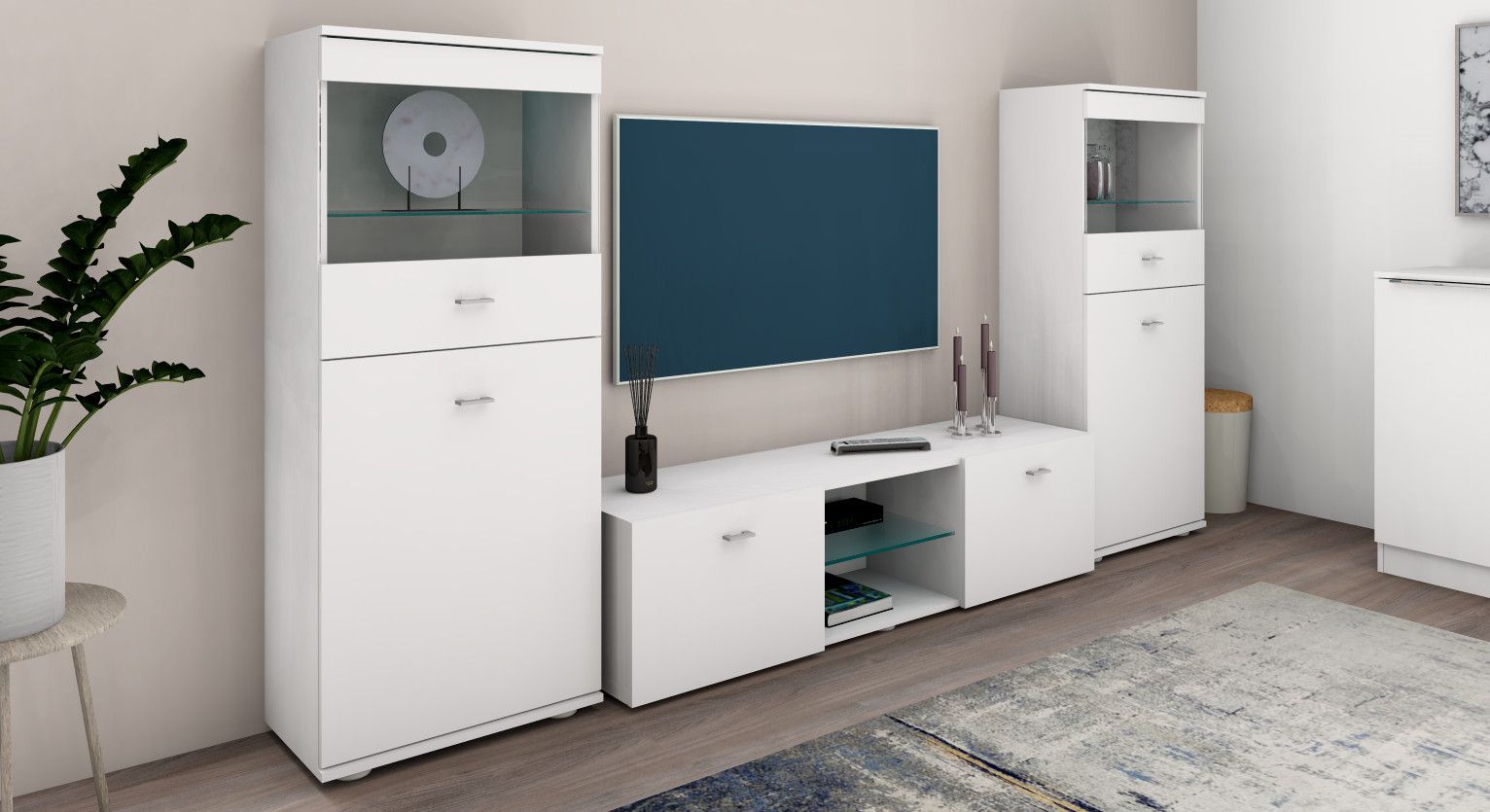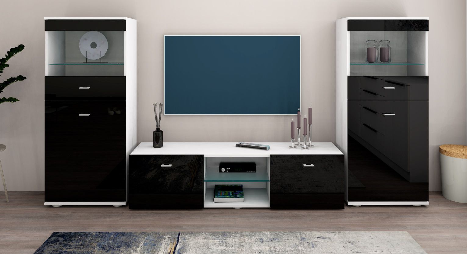 Wohnwand "Scala" Lowboard TV Board Möbel Vitrine Fernsehwand Weiß Hochglanz