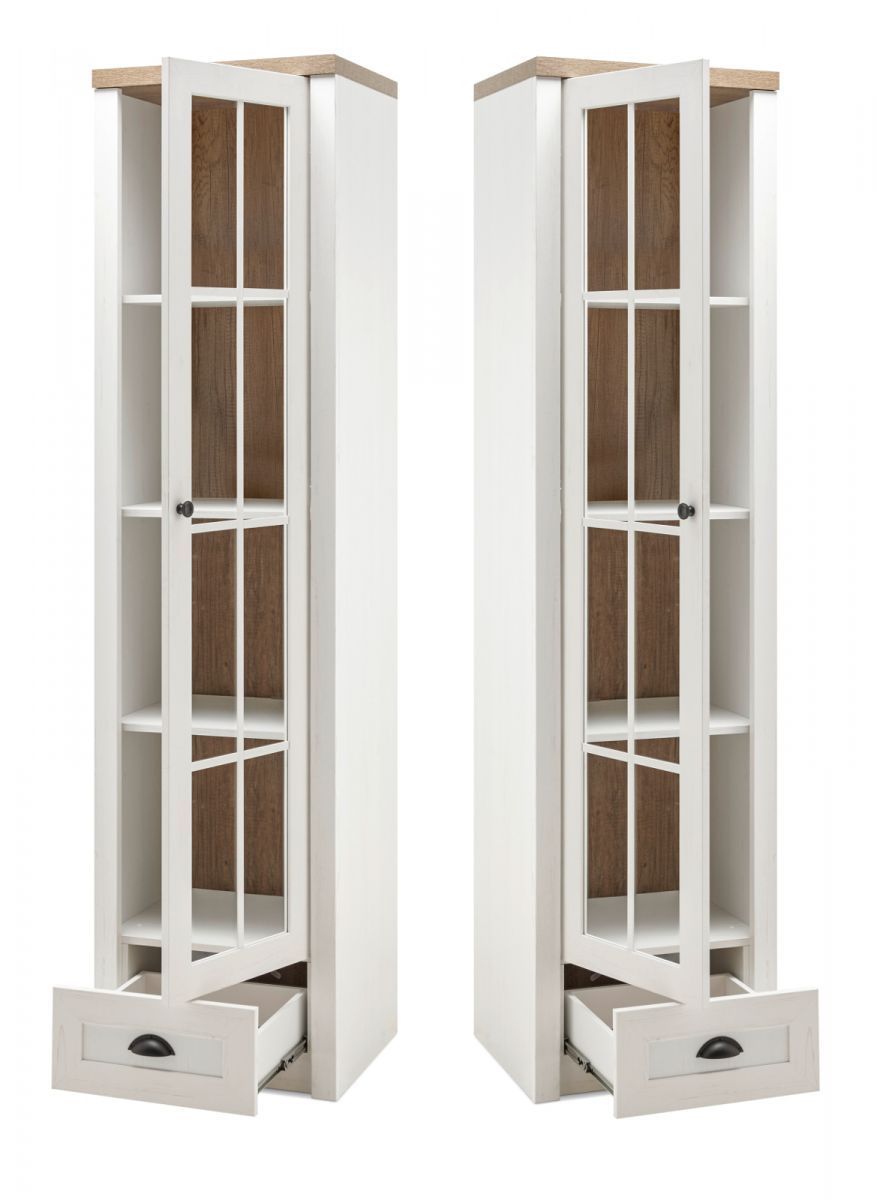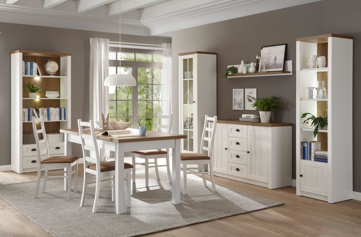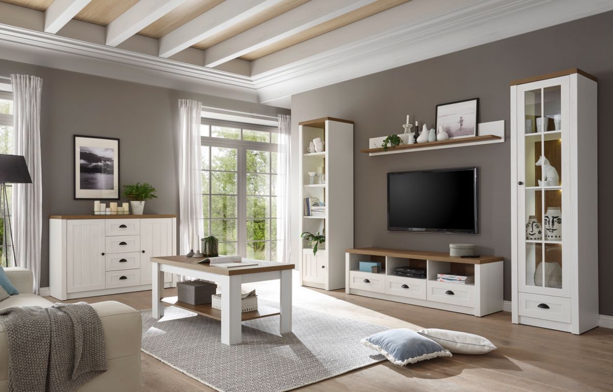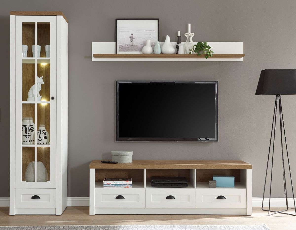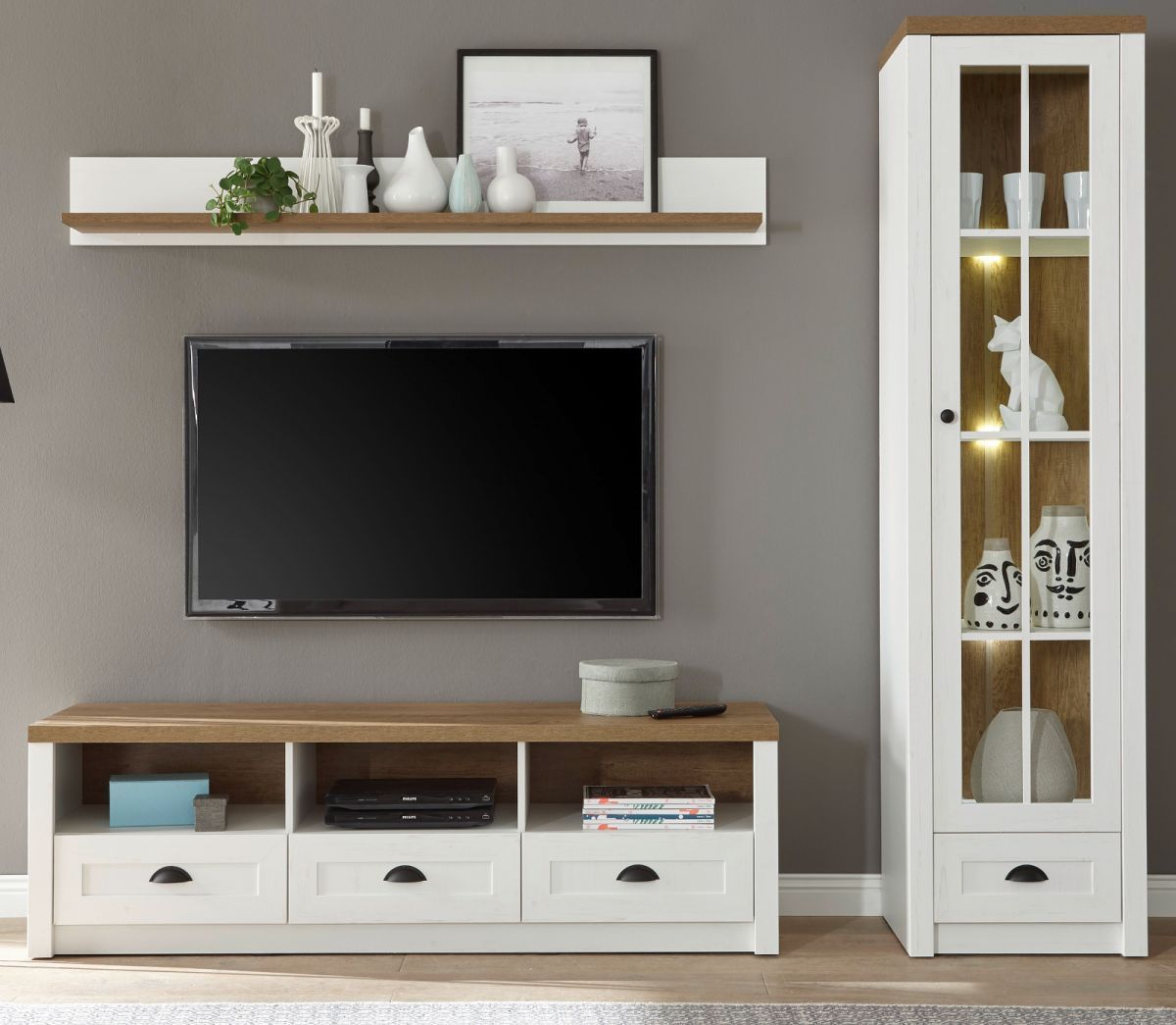 Wohnwand Schrankwand Eiche weiß Pinie Anbauwand Set Landhaus 230 cm 3-tlg Seyne