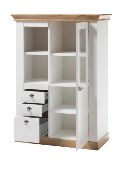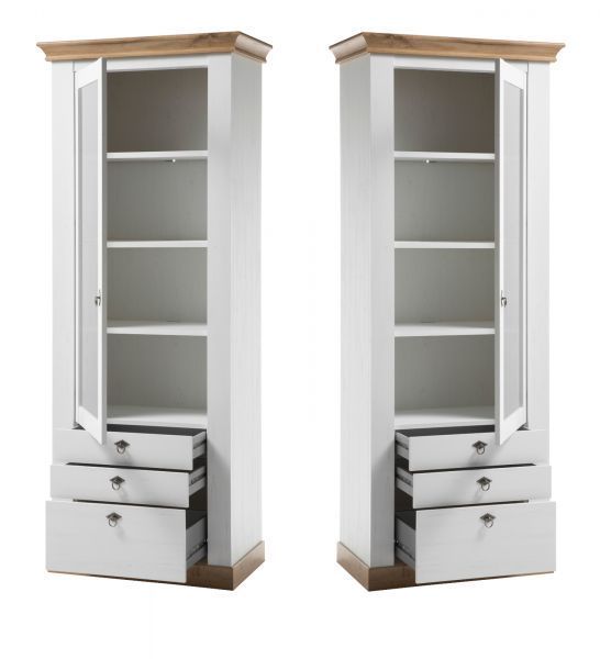 Wohnwand Schrankwand Eiche weiß Pinie Anbauwand Set Landhaus 355 cm 4-tlg Hemsby