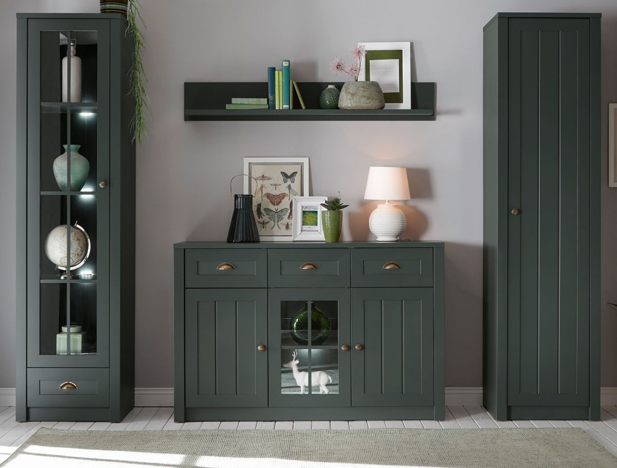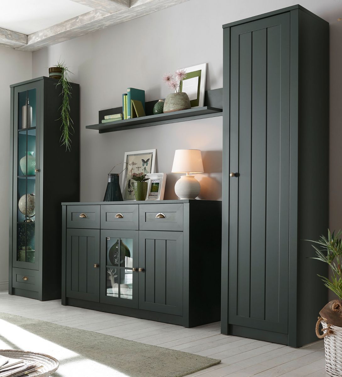 Wohnwand Schrankwand Forres Landhaus grün Anbauwand Set mit Sideboard 270 cm
