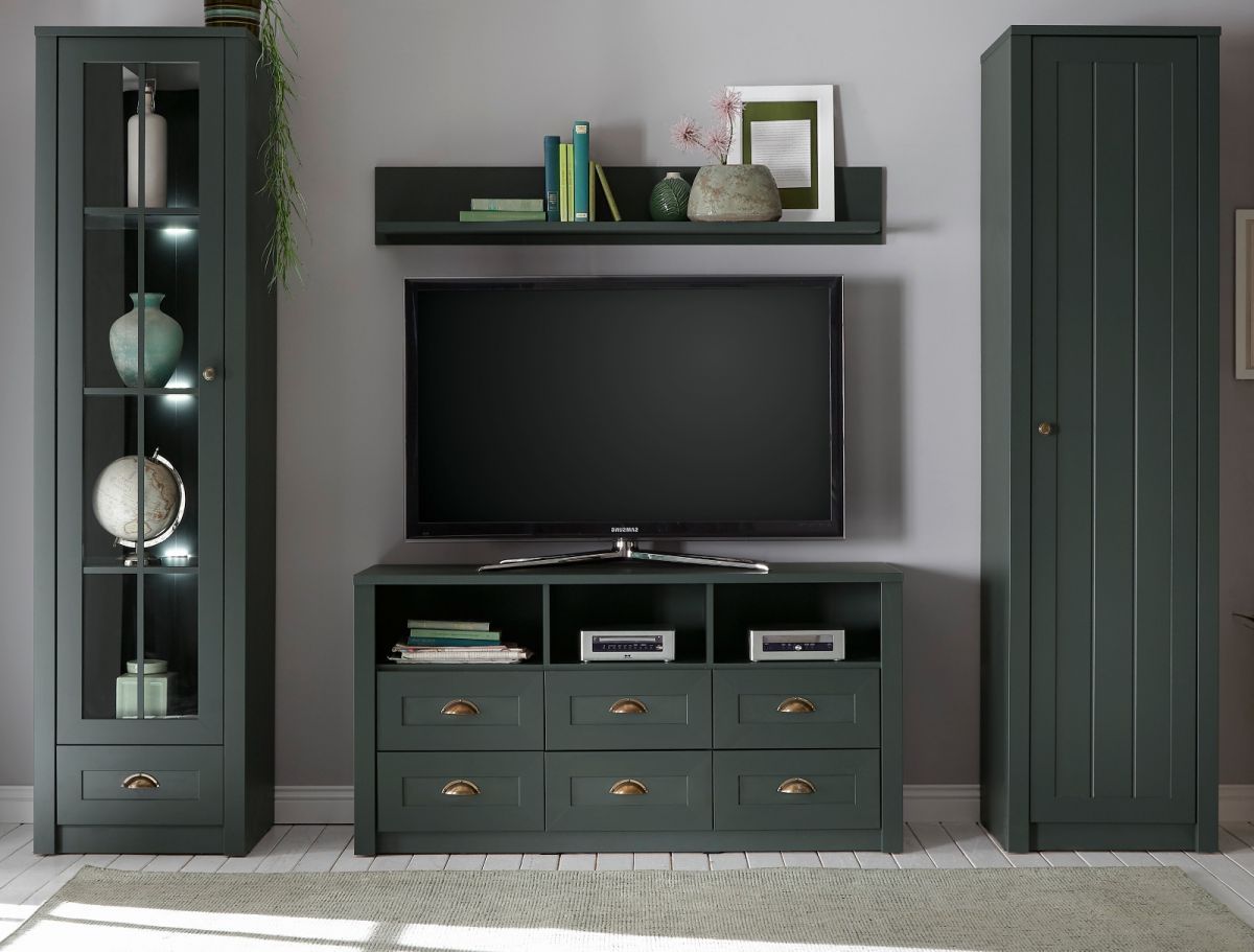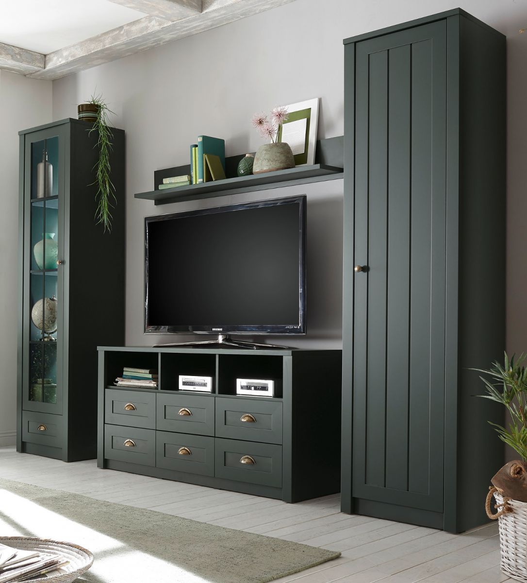 Wohnwand Schrankwand grün Landhaus Anbauwand Wohnzimmer Set 270 cm Forres