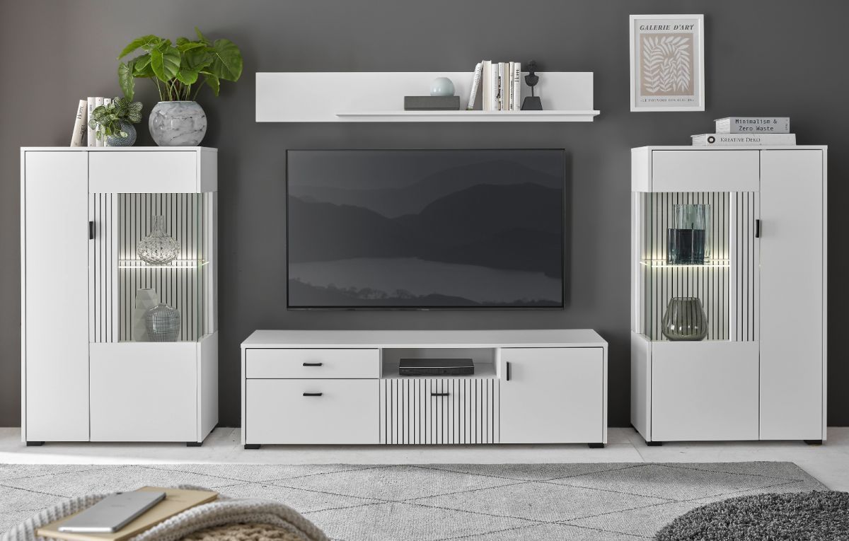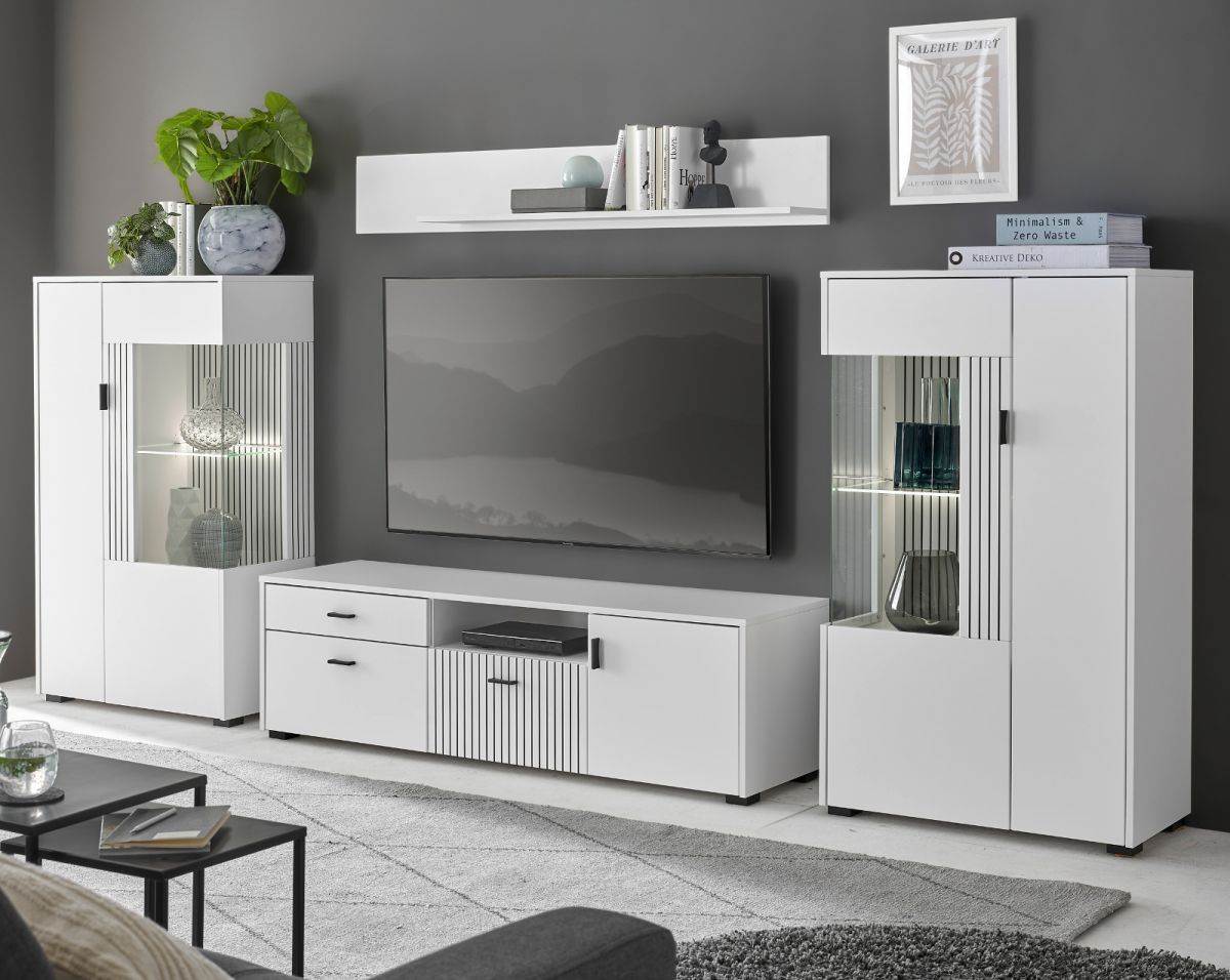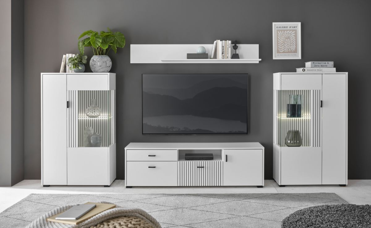 Wohnwand Schrankwand Merced Anbauwand Set 4-tlg mit Soft-Close weiß matt 320 x 170 cm
