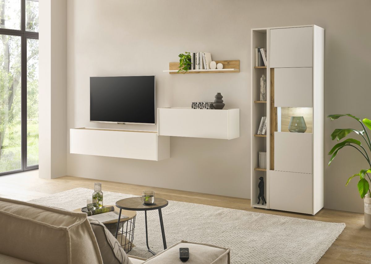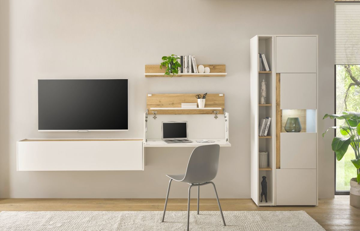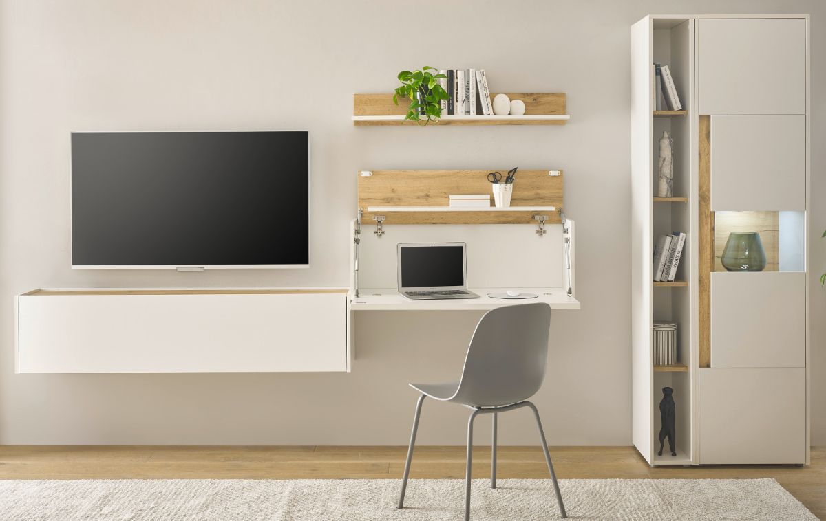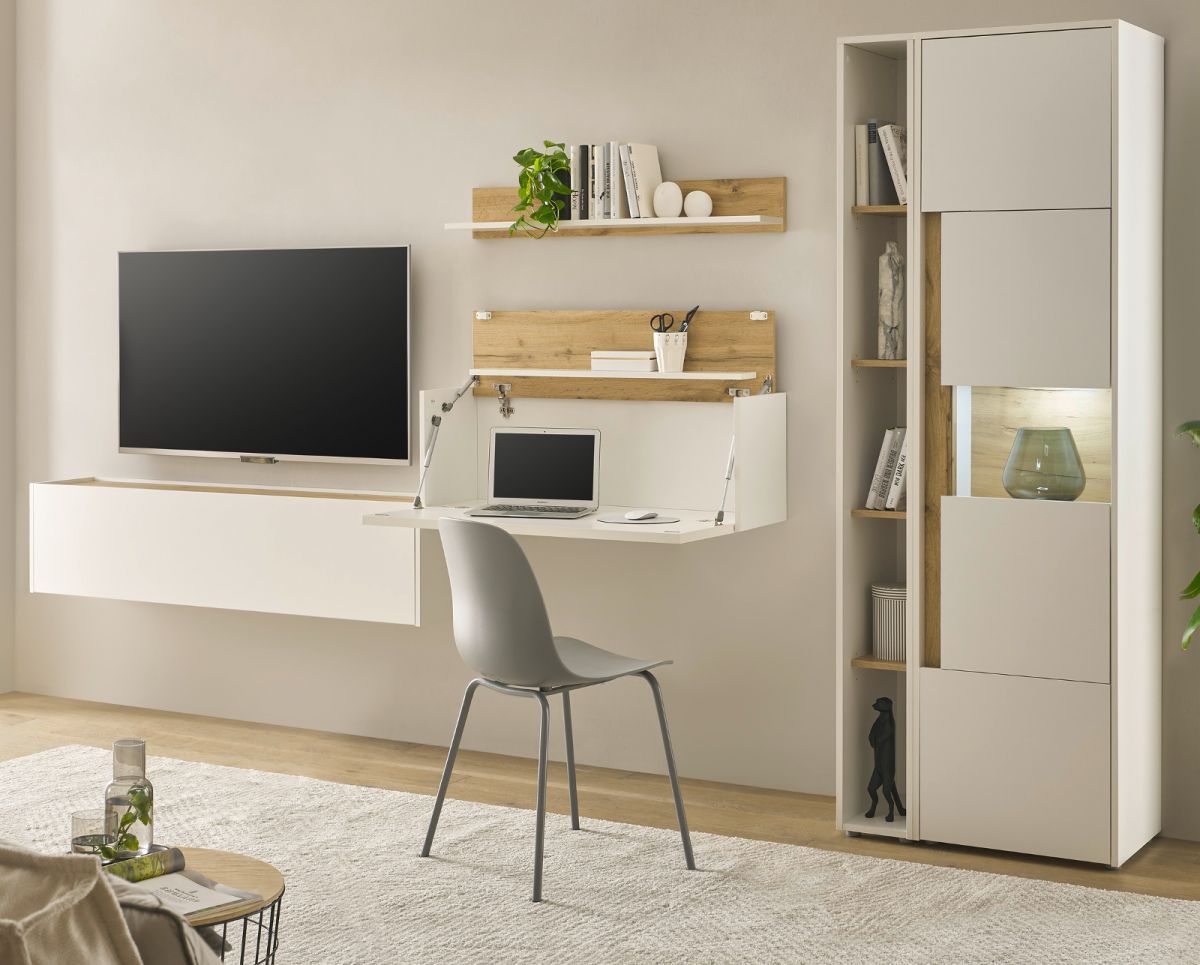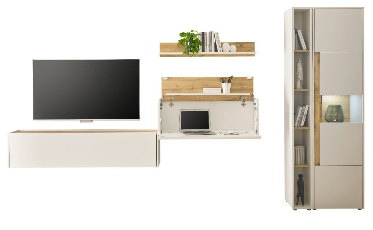 Wohnwand Schrankwand mit Sekretär weiß Wotan Eiche Wohnzimmer Set 5-tlg. Center