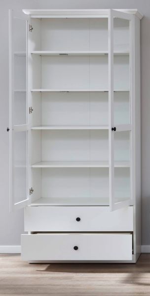 Trendteam Wohnwand Schrankwand weiß Landhaus Lowboard Podest und große Vitrine Baxter 270 cm