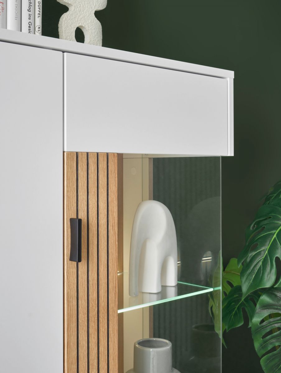 Wohnwand Schrankwand weiß matt Eiche Wohnzimmer Set mit Soft-Close Merced 285 cm