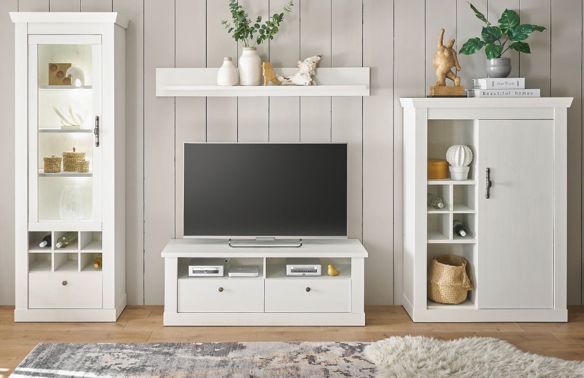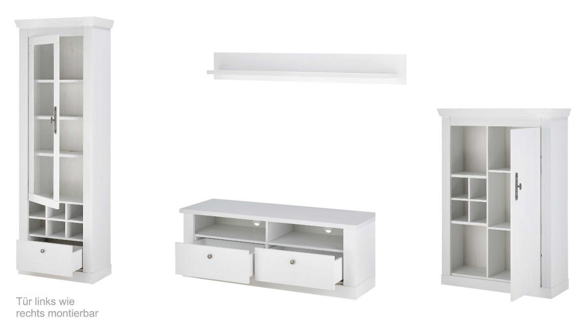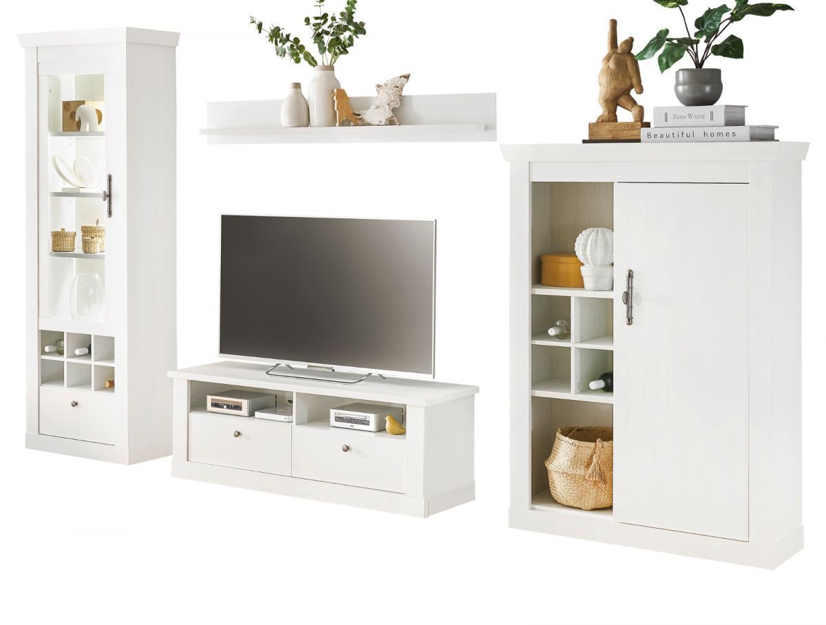 Wohnwand Schrankwand Wohnzimmer Anbauwand mit Soft-Close weiß Pinie 327 cm Fiastra