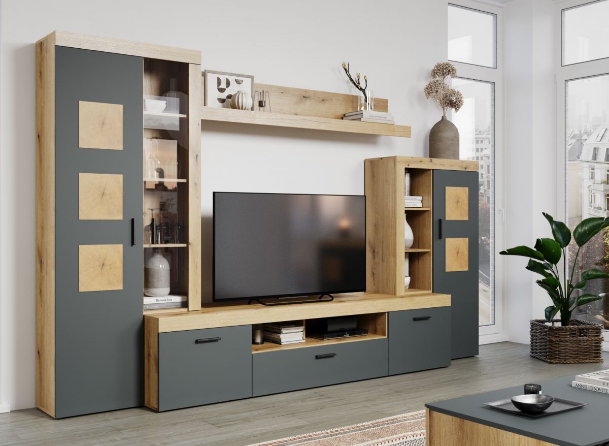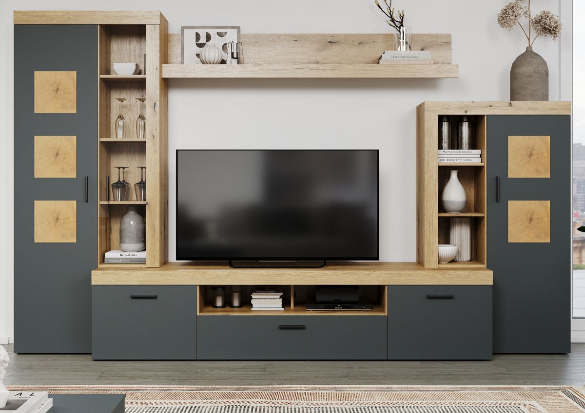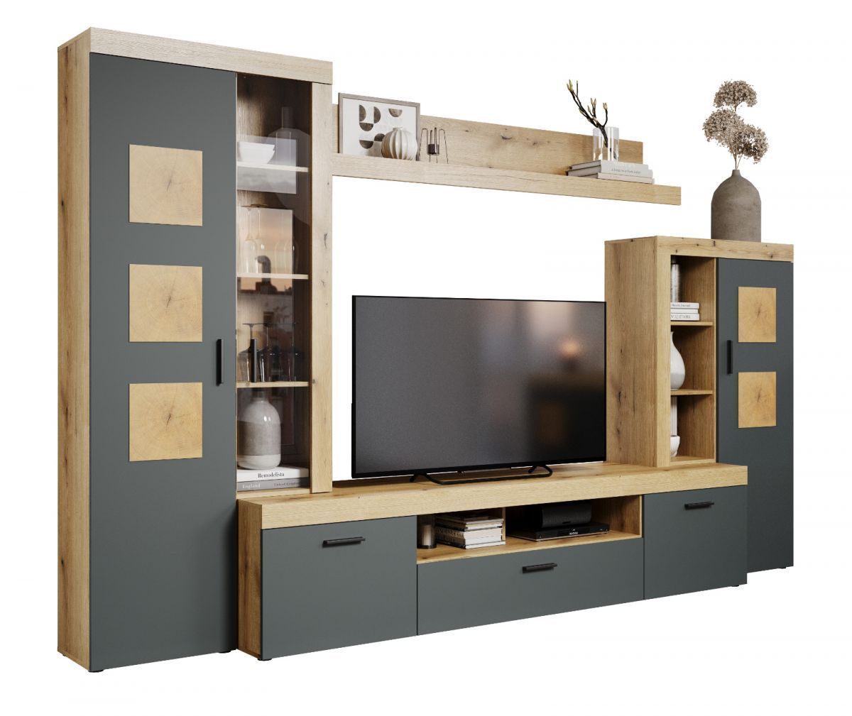 trendteam Wohnwand Schrankwand Wohnzimmer Möbel 331 cm 4-teilig in grau Eiche Evoke Tyler