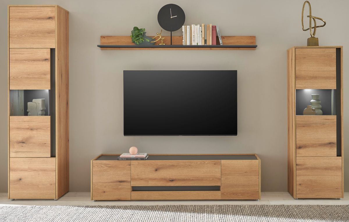Wohnwand Schrankwand Wohnzimmer Möbel Set 4-teilig Eiche Evoke Center 310 x 197 cm