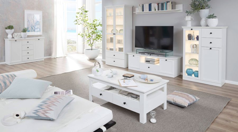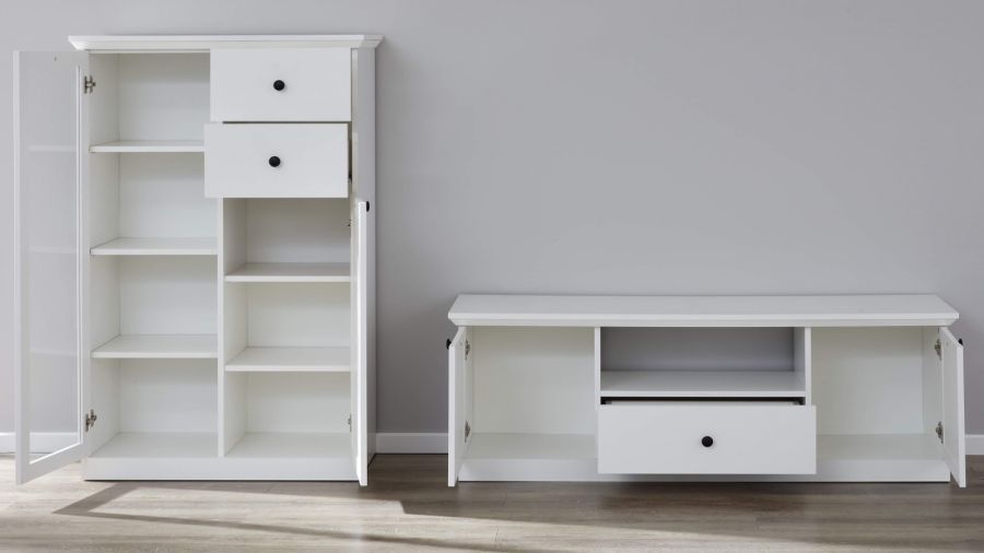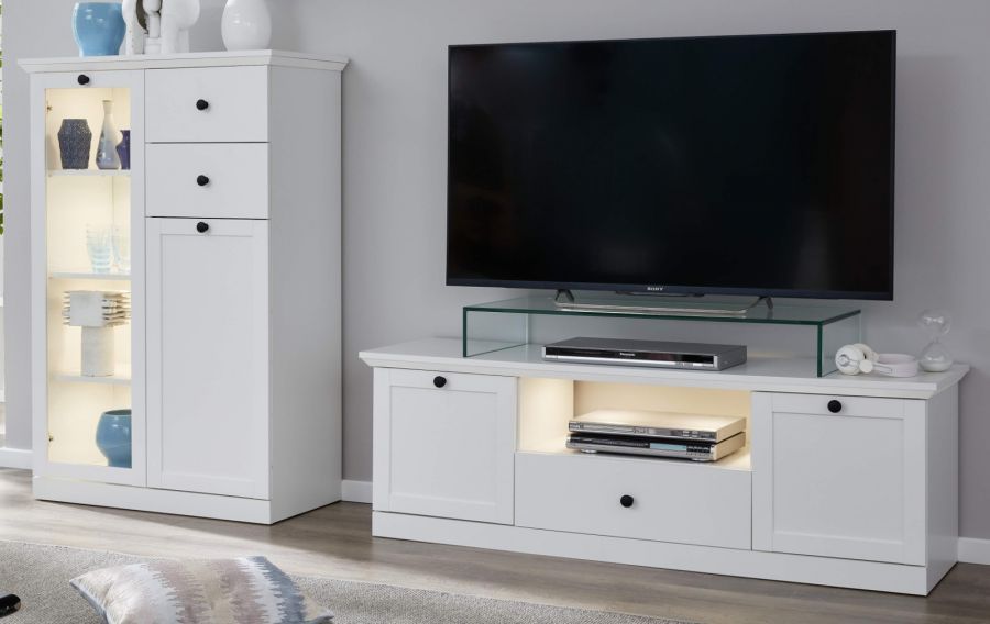 Trendteam Wohnwand Set 2-teilig weiß Landhaus Schrankwand mit Kommode und TV-Lowboard Baxter