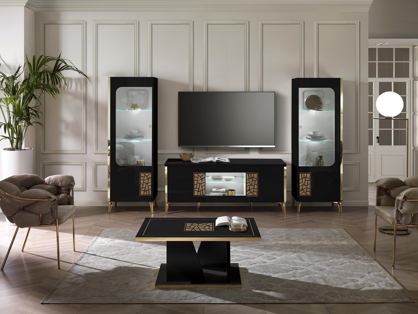 Wohnwand Stella 4-Teilig in Schwarz/Gold