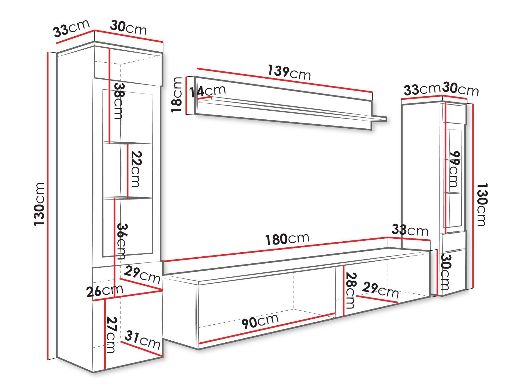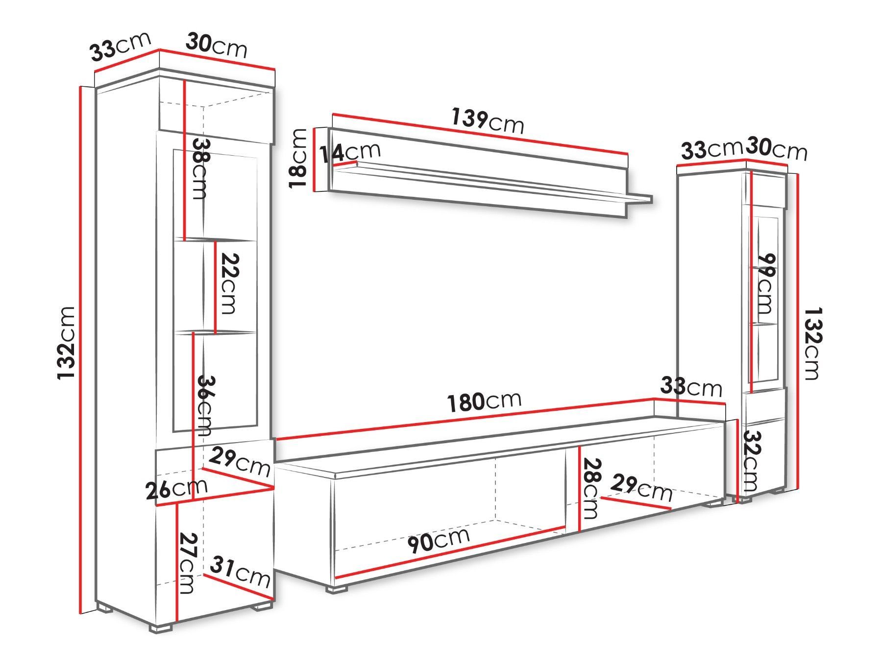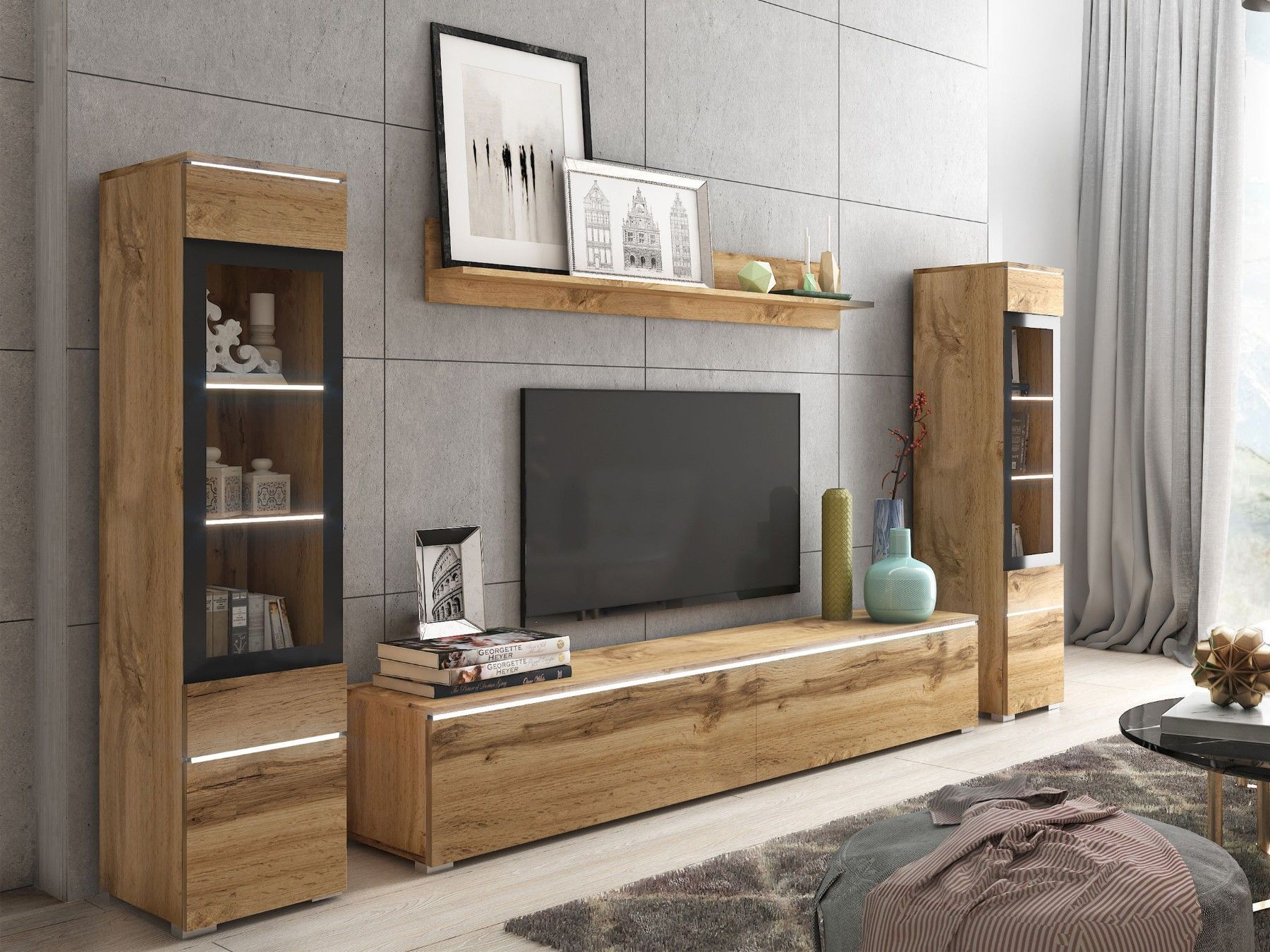 Wohnwand Vera II Mediawand Wohnzimmer Wohnzimmer-Set Stilvoll Kollektion Neu