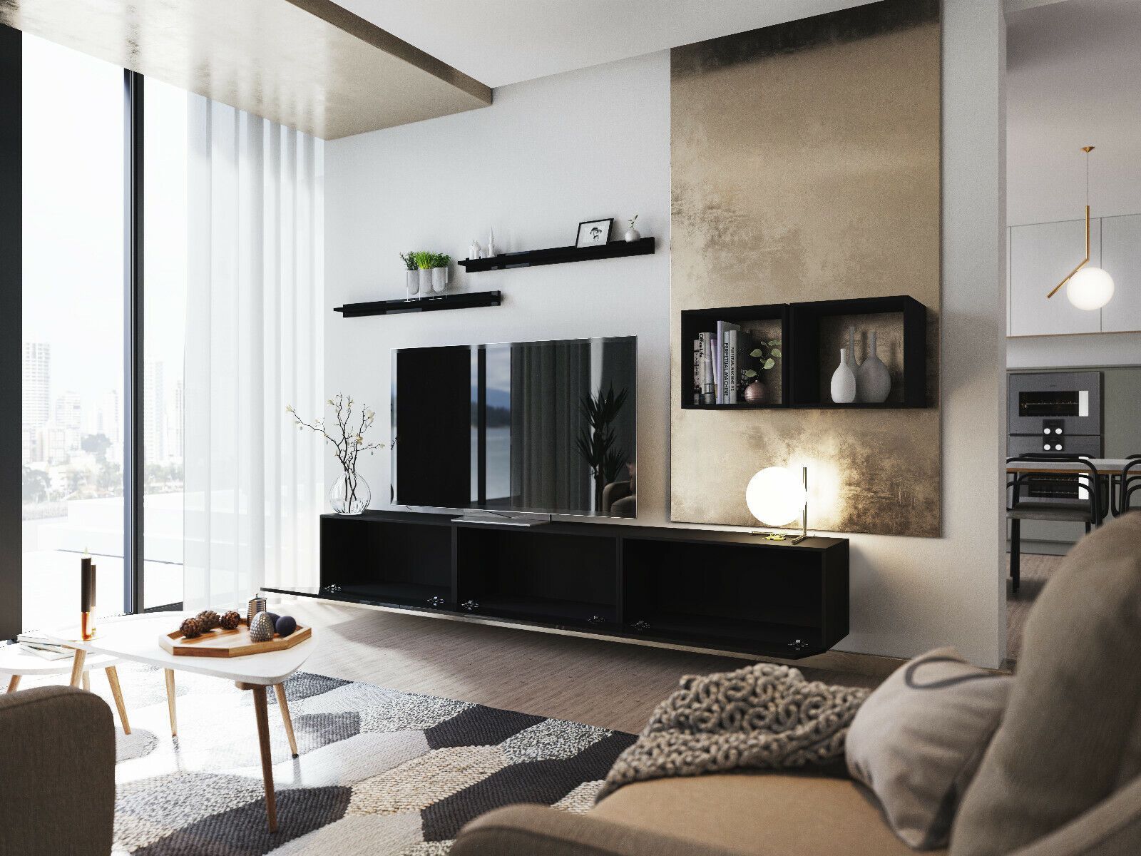 Wohnwand VEX 18 Anbauwand Mediawand Weiß Schwarz Hochglanz TV Möbel Set Schrank