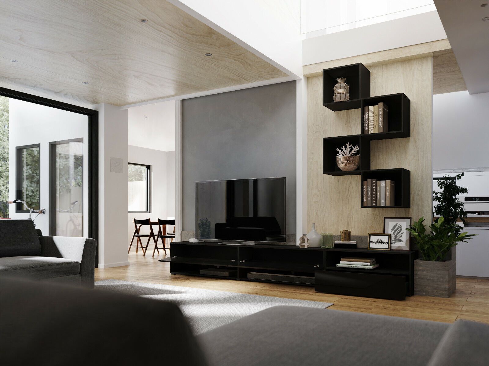 Wohnwand VEX 36 Anbauwand Mediawand Weiß Schwarz Hochglanz TV Möbel Set Schrank