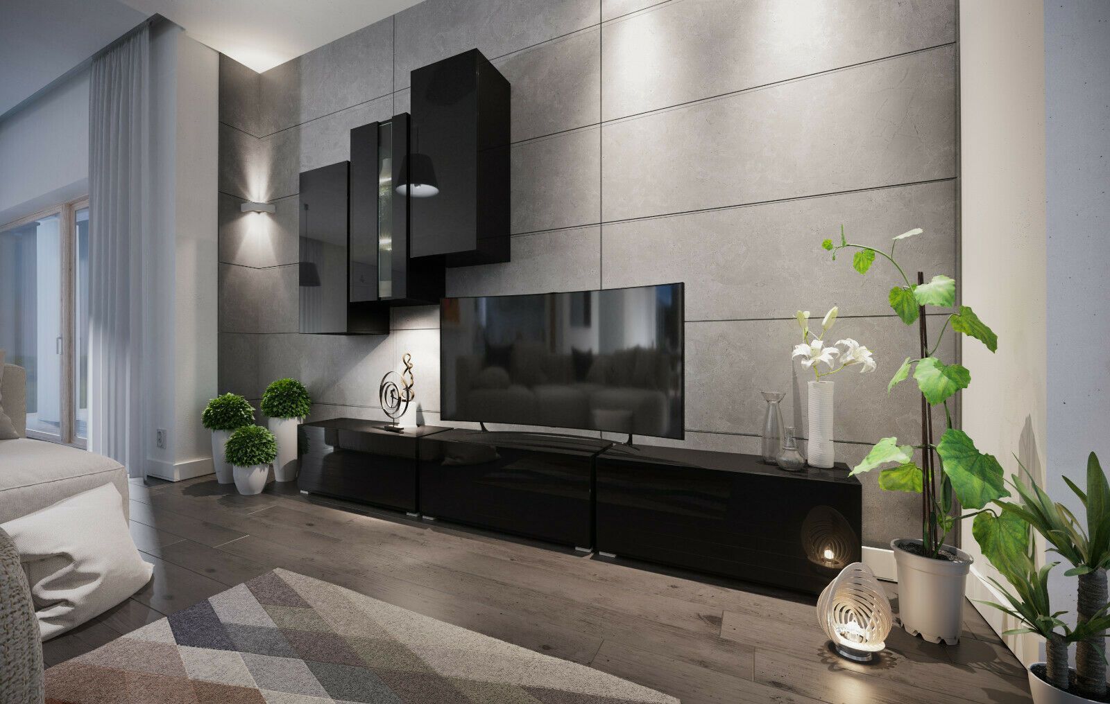 Wohnwand VEX 5 Anbauwand Mediawand Weiß Schwarz Hochglanz TV Möbel Set Schrank