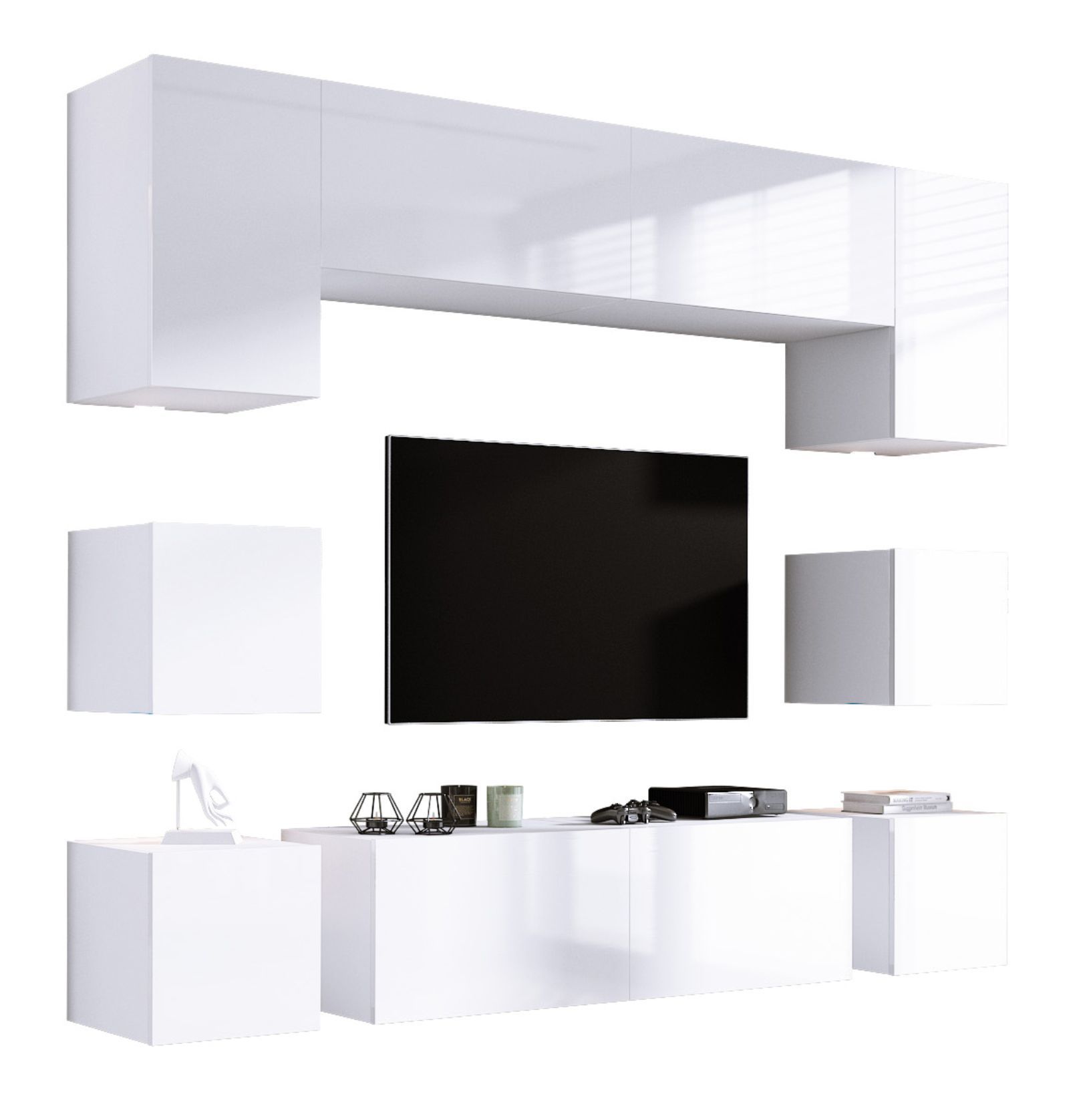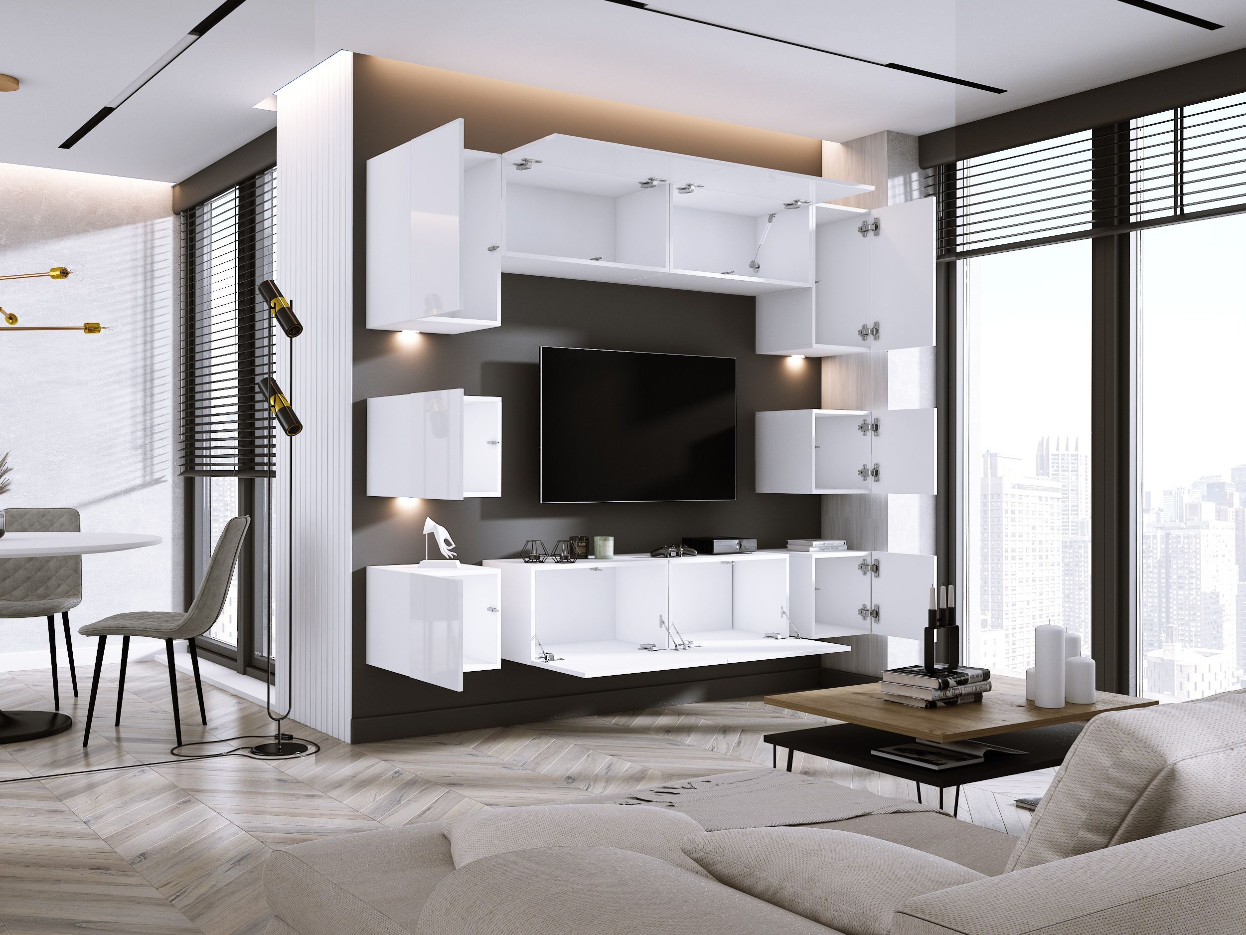 Wohnwand Weiß Matt/ Weiß Hochglanz Medienwand, Wohnzimmer