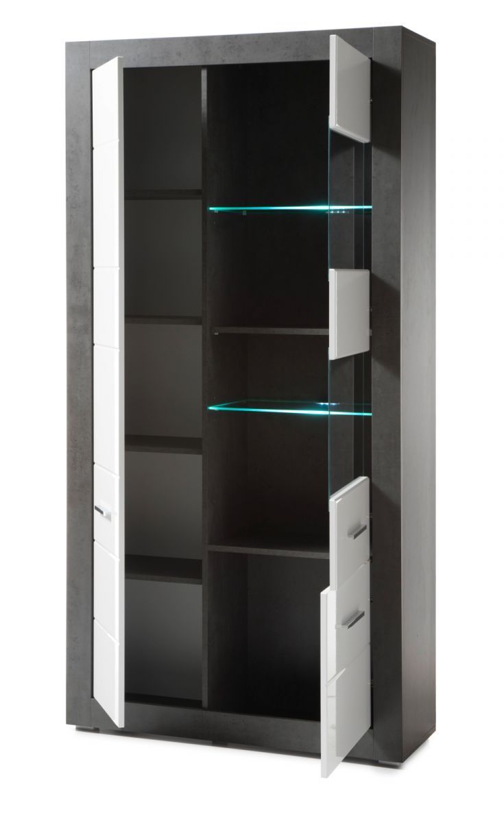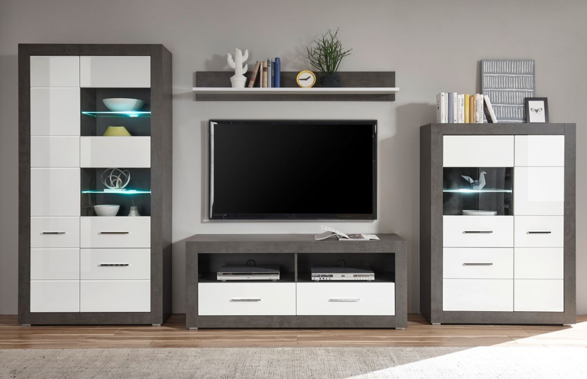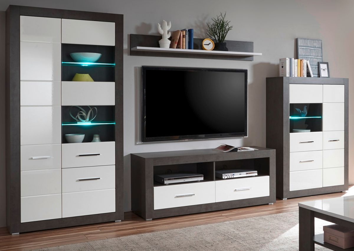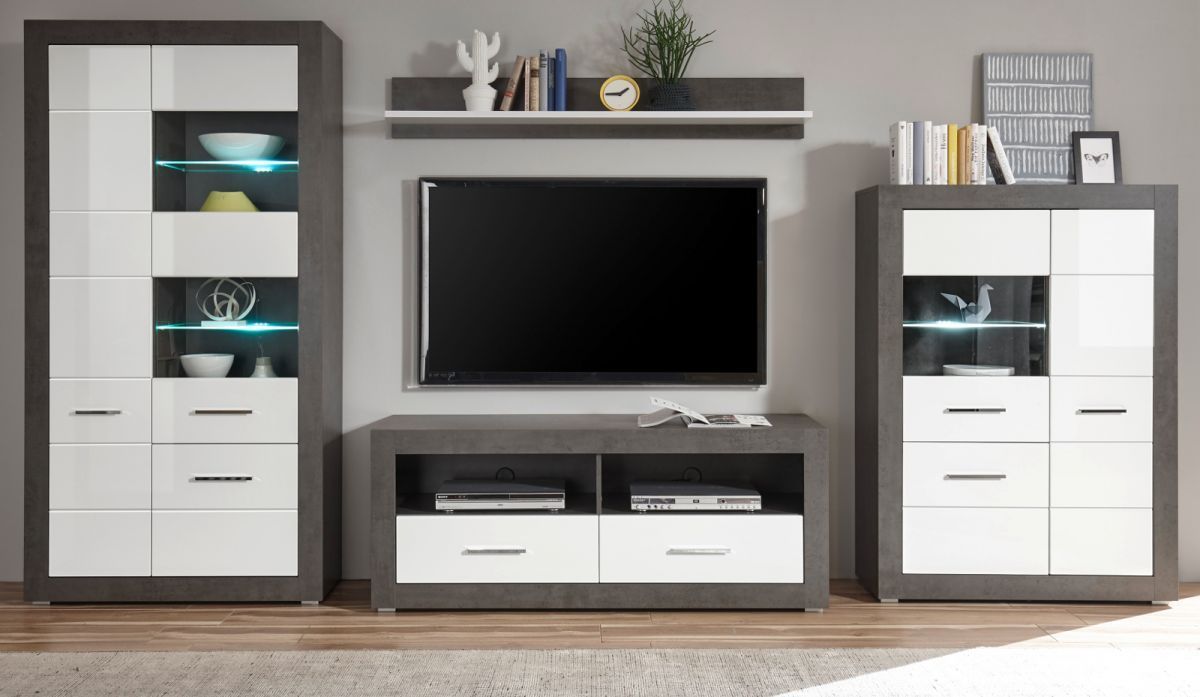 Wohnwand weiss Hochglanz grau Stone Schrankwand Wohnkombination Briard 370 cm