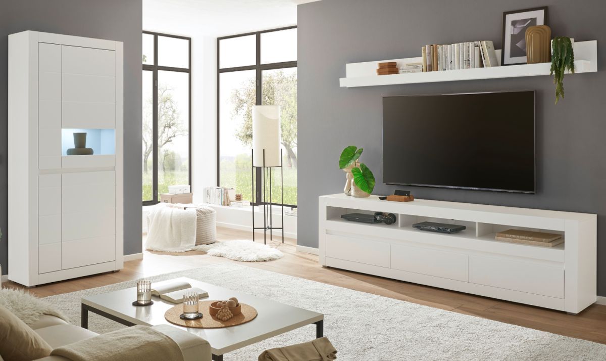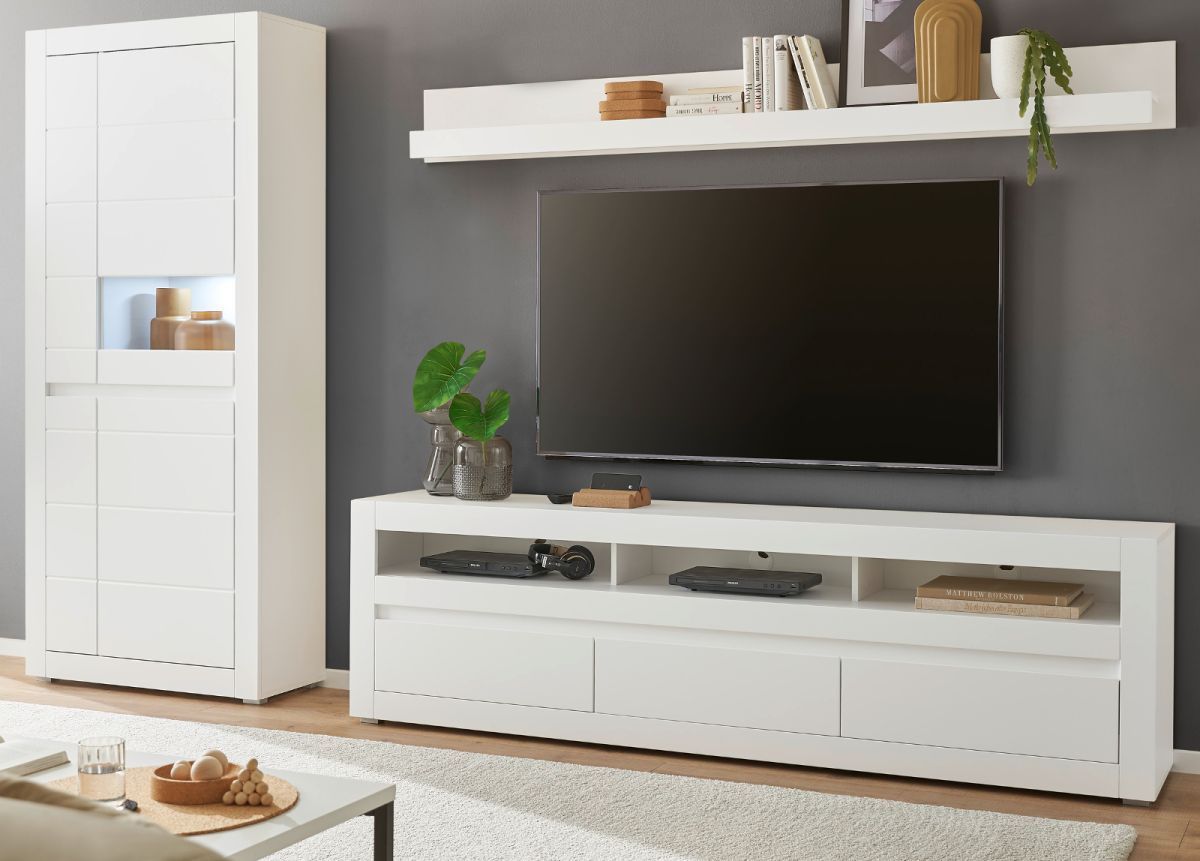 Wohnwand weiß Hochglanz Wohnzimmer Schrankwand Medienwand mit Soft-Close Derby 312 cm