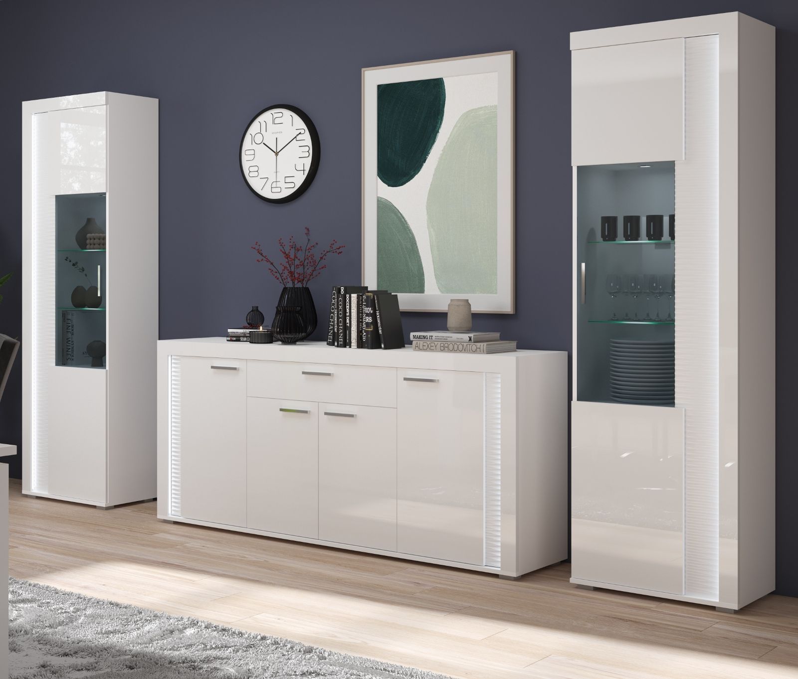 Wohnwand Wohnzimmer Set Vitrinen Sideboard Schrankwand inkl Beleuchtung Sunroof