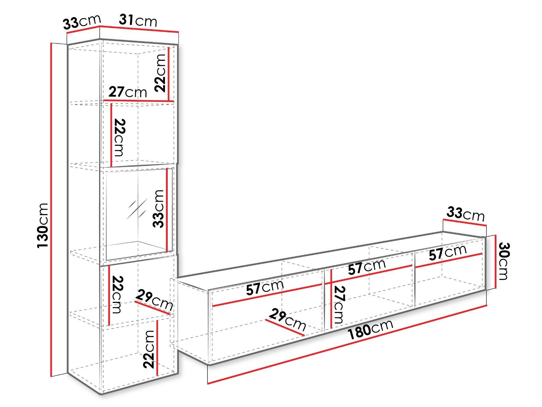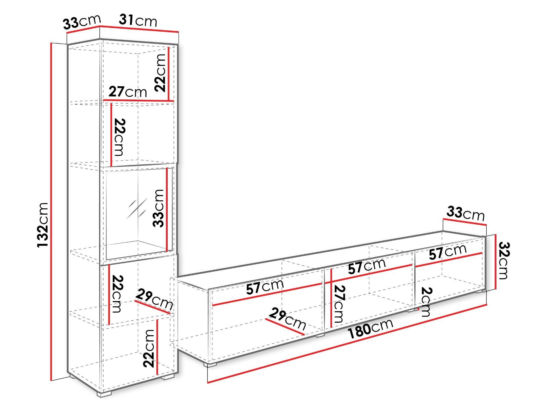 Wohnwand Zogle I Stilvoll Wohnzimmer-Set, TV-Schrank, Modern Mediawand