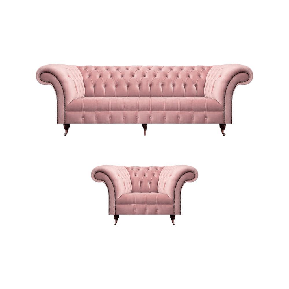 Wohnzimmer Chesterfield Sofa Couch Dreisitze Polstermöbel Sessel Rosa Komplett