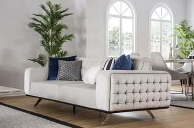 Dreisitzer Weiß Stoff Wohnzimmer Design Couchen Sofa Chesterfield Couch