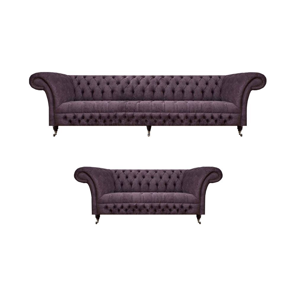 Wohnzimmer Luxus Lila Sofa Dreisitzer Design Sessel Sofagarnitur Chesterfield