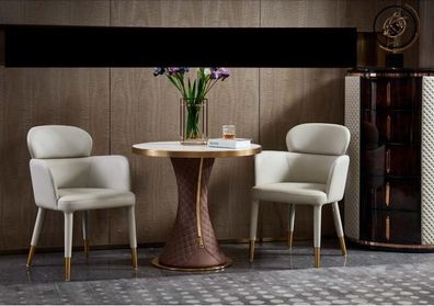 Sessel Leder Weiß Modern Möbel Lehnstuhl Design Möbel Luxus Edelstahl Wohnzimmer