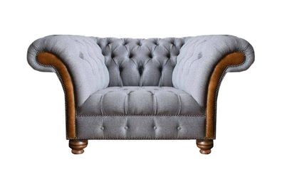 Hellgrauer Chesterfild Textilsessel Wohnzimmer Einsitzer Polstersessel