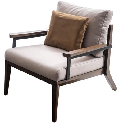 Beiger Polstersessel Designer Holzgestell Wohnzimmer Textilsitzer