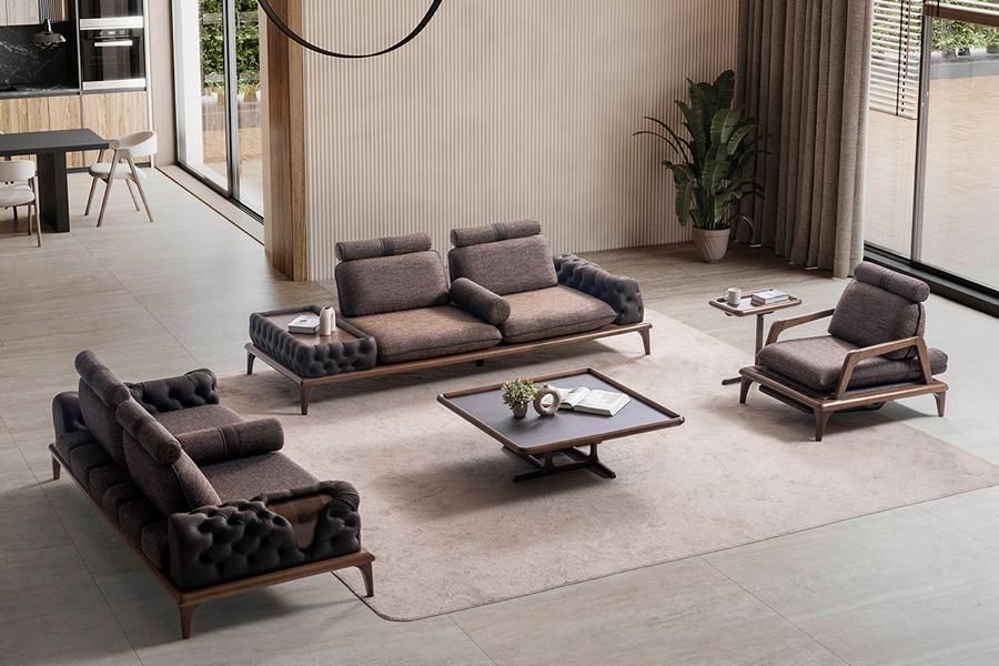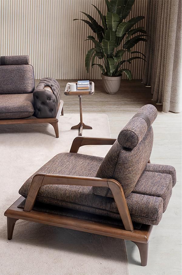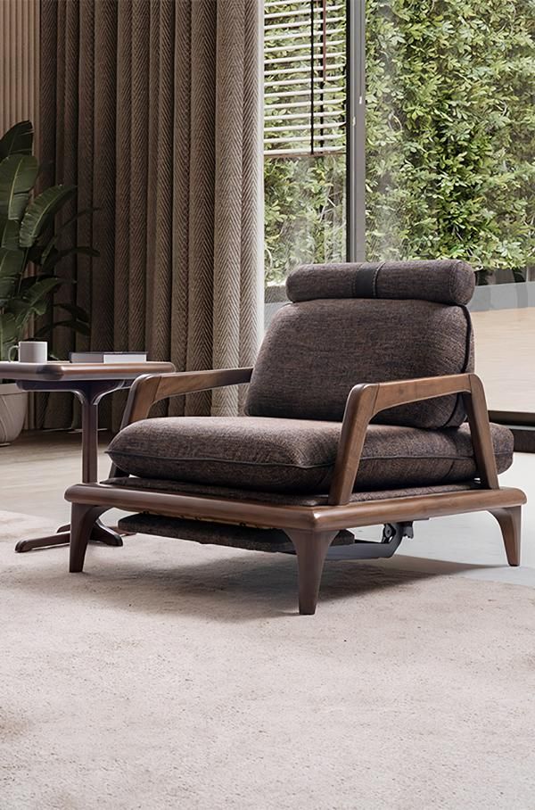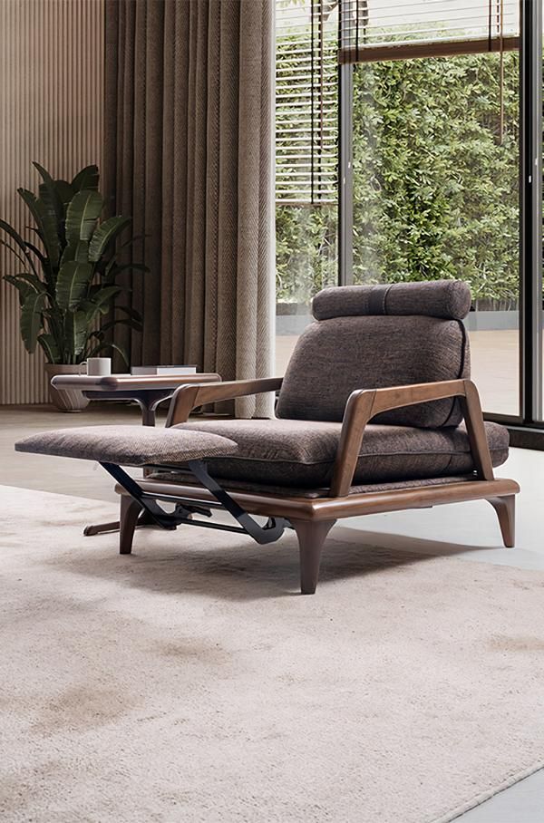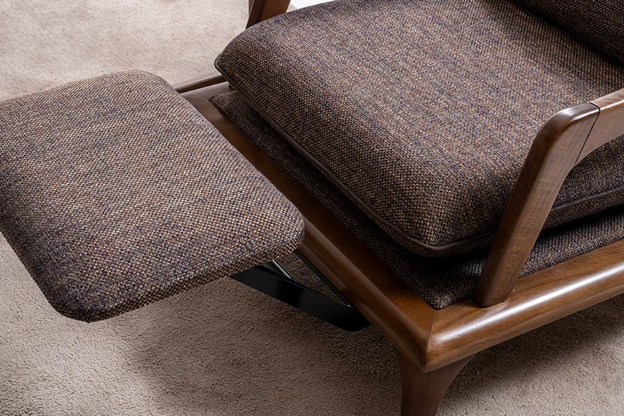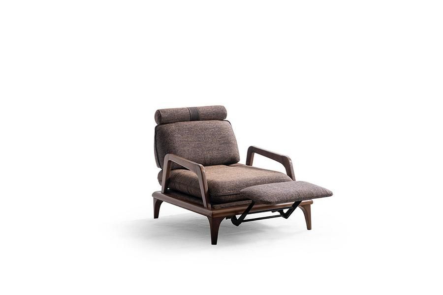 Wohnzimmer Sessel mit Fußstützenfunktion Design in Braunem Textil