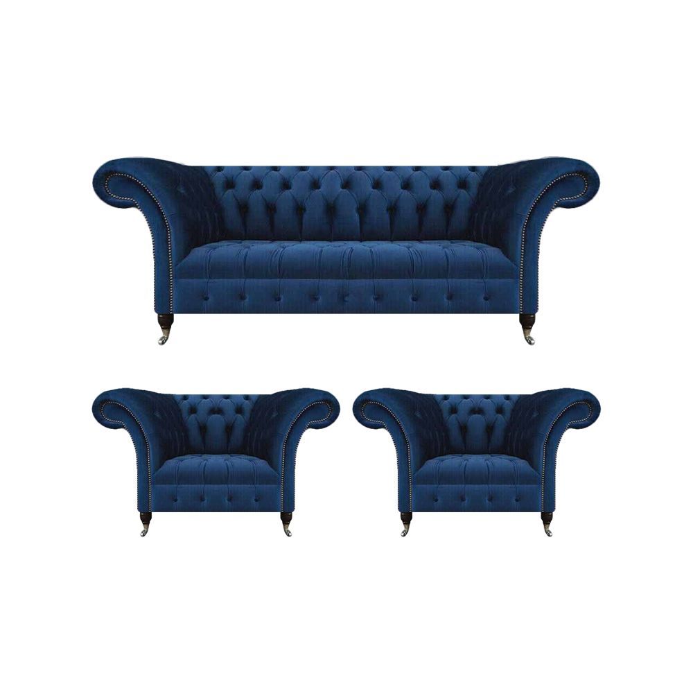 Wohnzimmer Set 3tlg Luxus Garnitur Chesterfield Blau Polstersitz Chesterfield