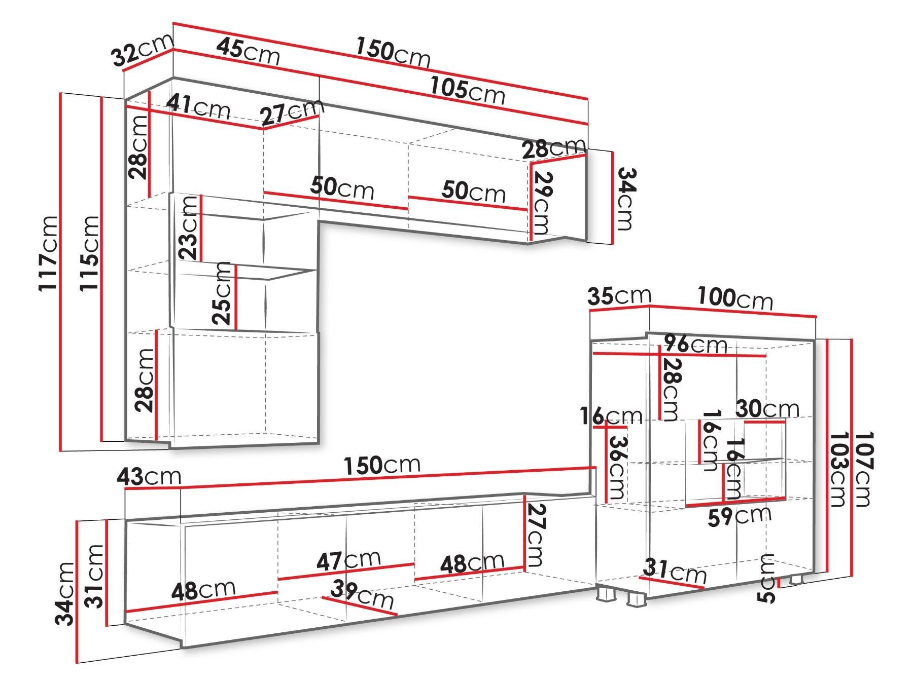 Wohnzimmer-Set Calabrini III Wohnzimmer Wohnwand Anbauwand Modern Kollektion