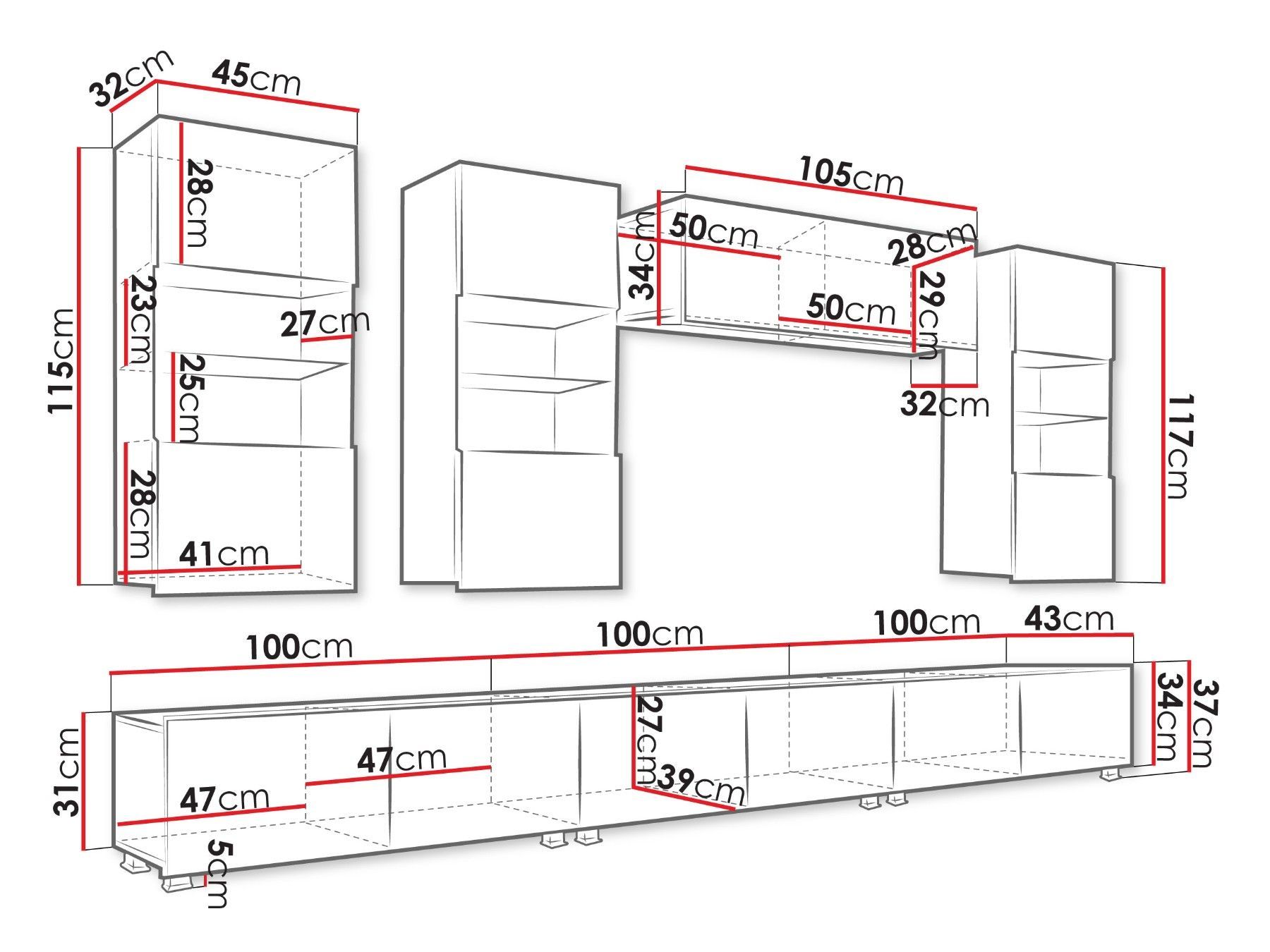 Wohnzimmer-Set Calabrini XI Wohnwand Wohnzimmer Anbauwand Modern Kollektion