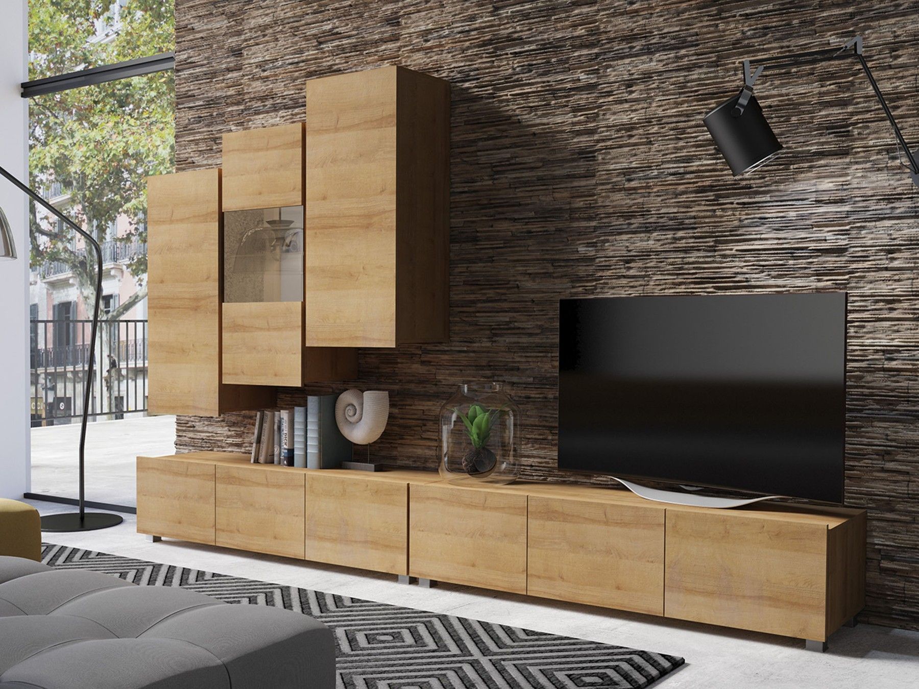 Wohnzimmer-Set Calabrini XVII Anbauwand Modern Kollektion Wohnzimmer Wohnwand