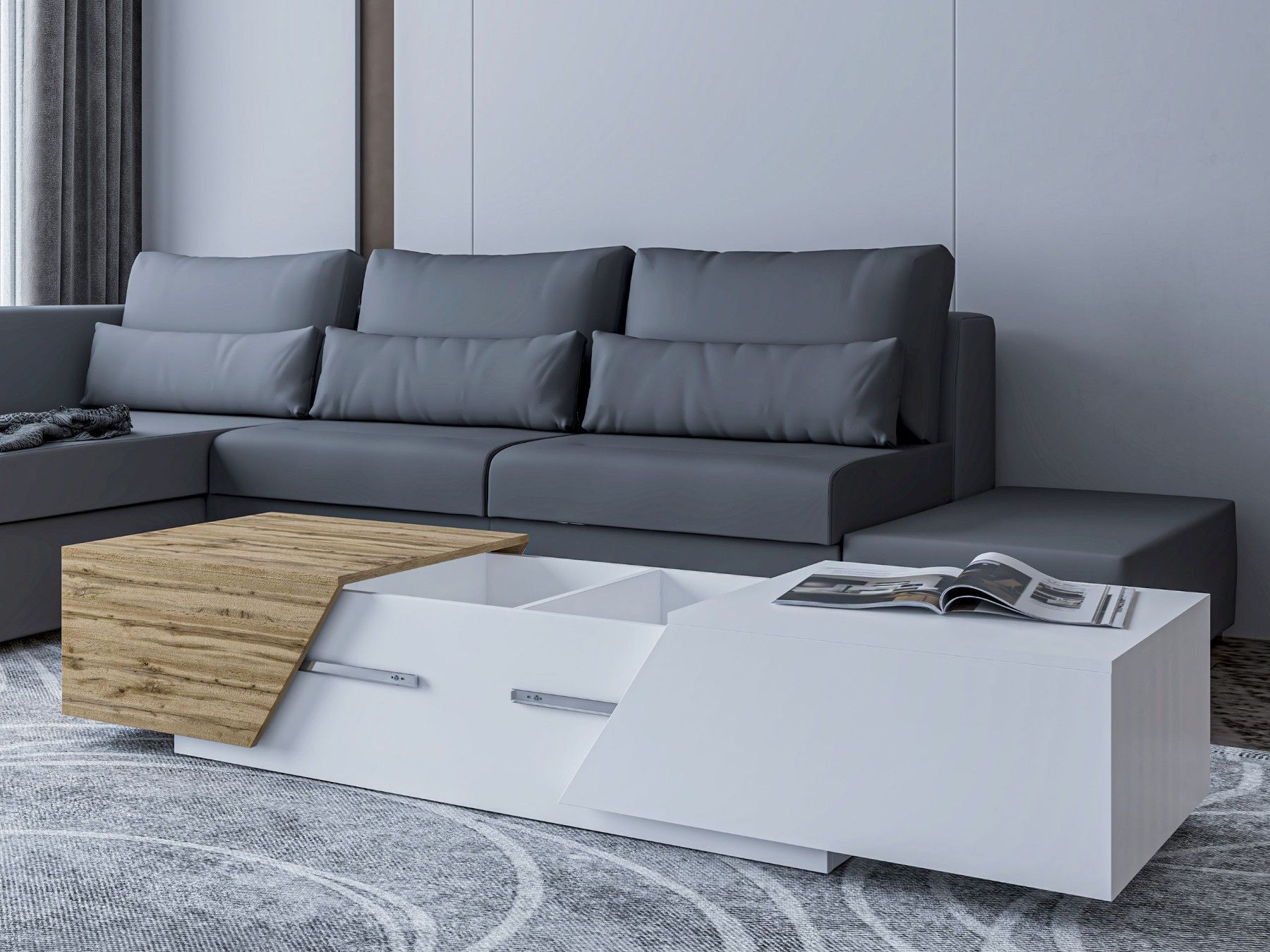 • Coma Möbelset für das Wohnzimmer mit Kommode und Bank Eiche Craft gold / weiß matt