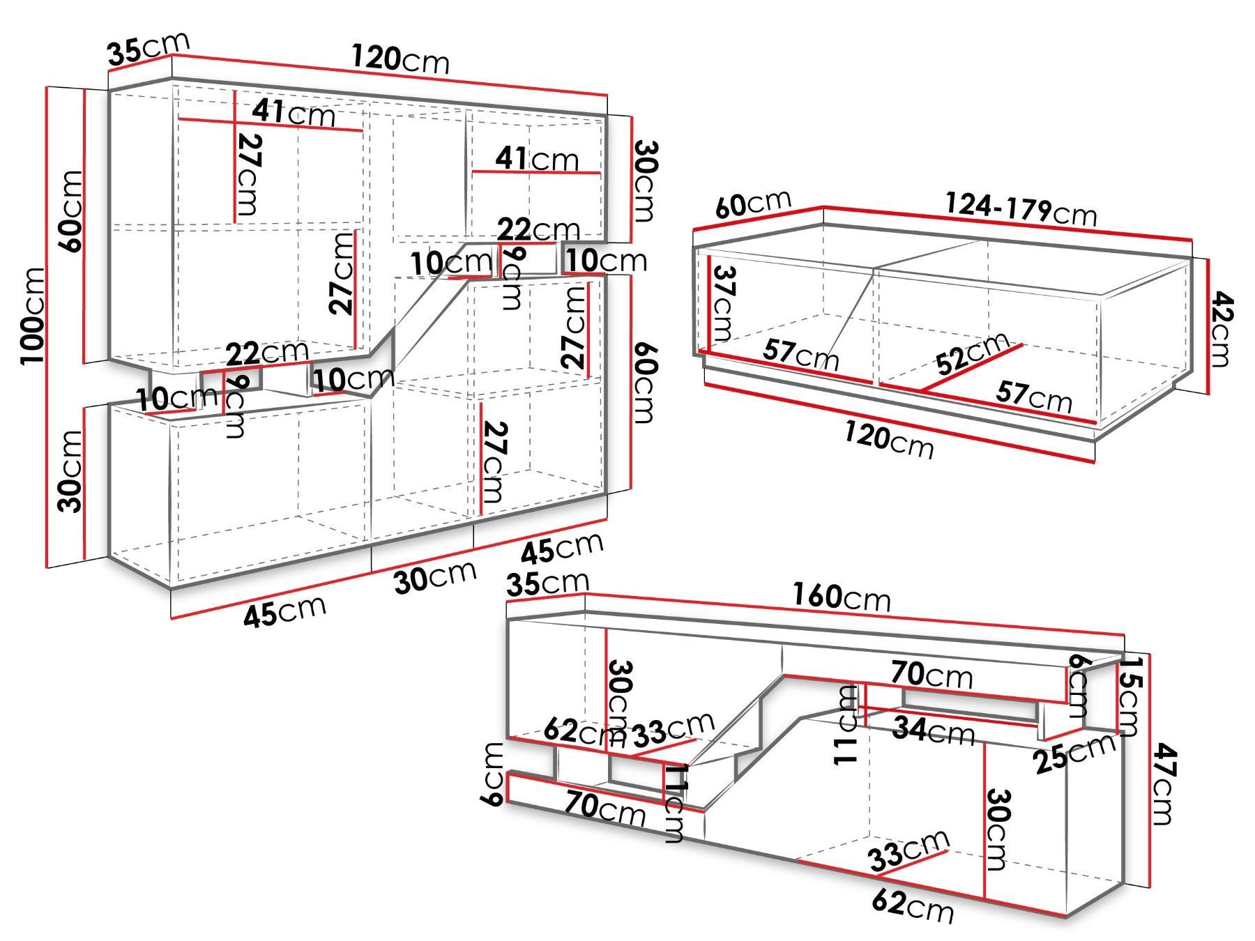 Wohnzimmer-Set Ceelias I TV-Schrank Kommode Tisch Wohnmöbel Wohnzimmer M24