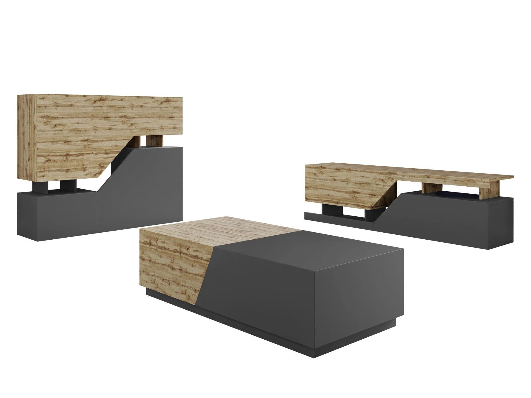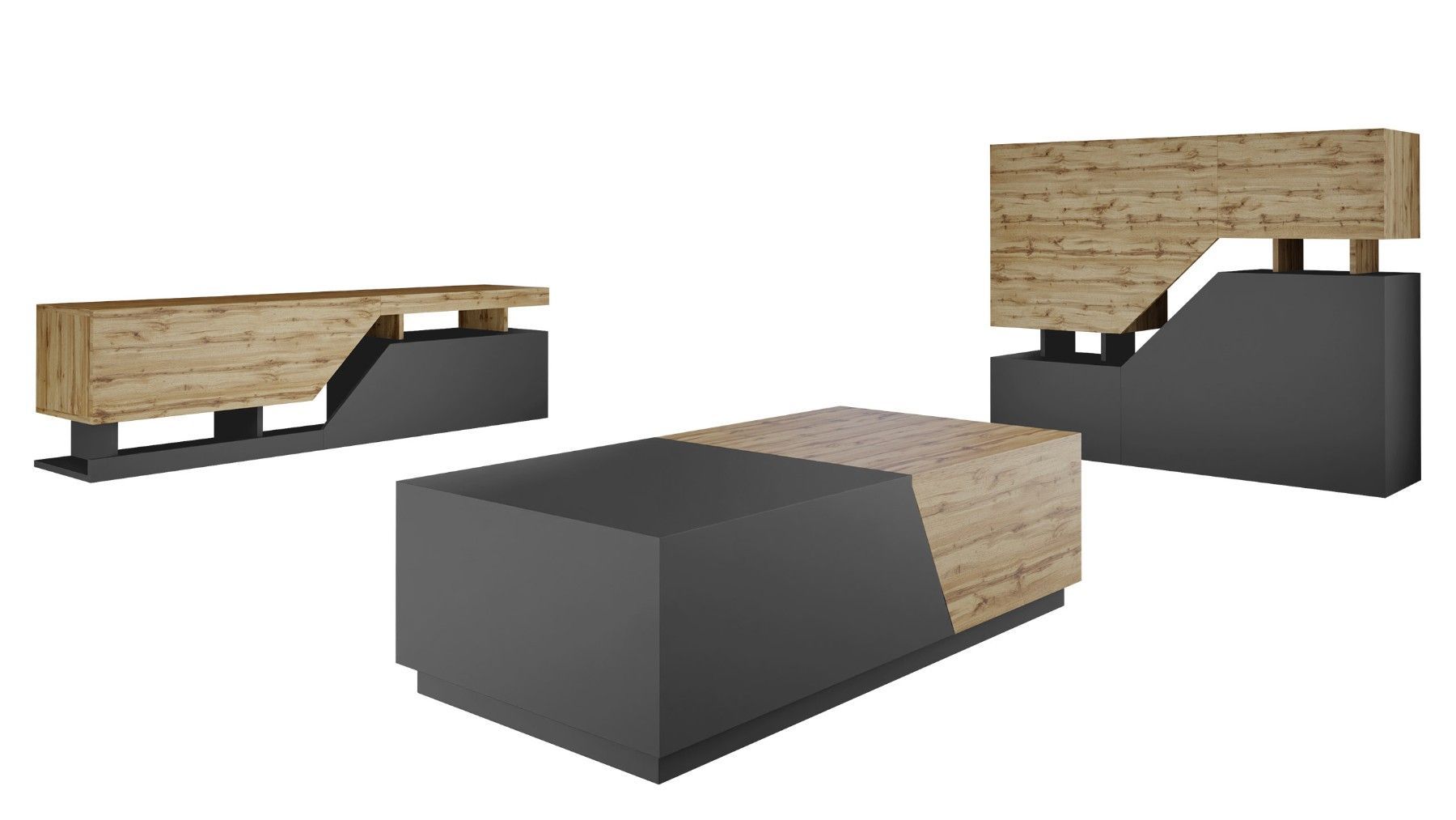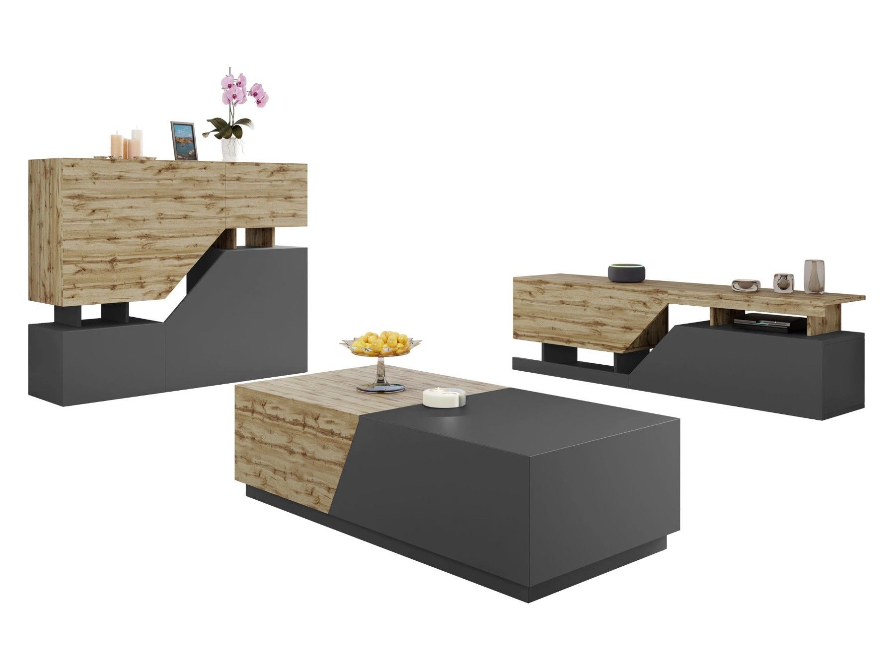 • Wohnzimmerset Daros - Couchtisch, TV-Tisch, Kommode 150 cm & Kommode 120 cm Anthrazit