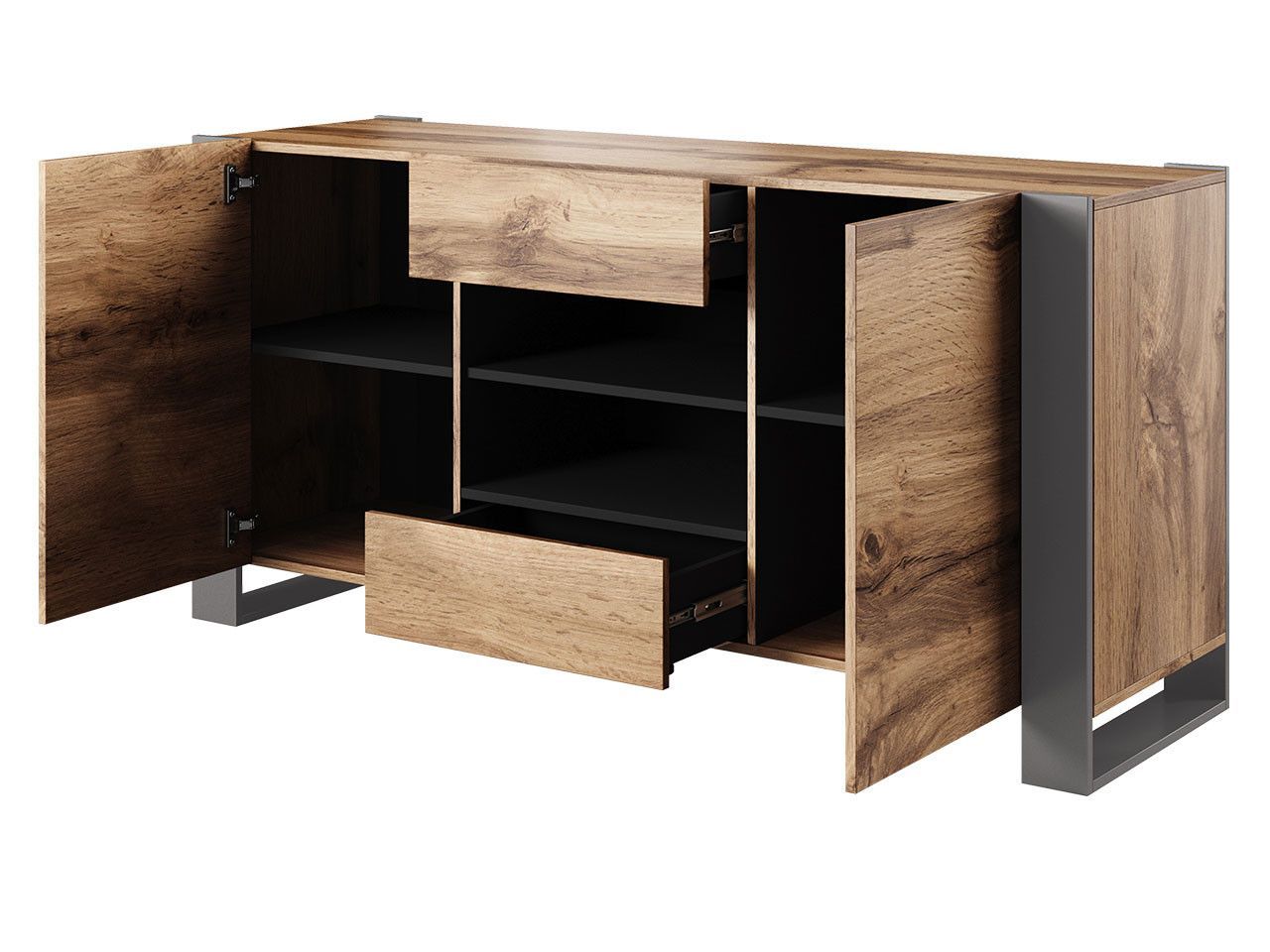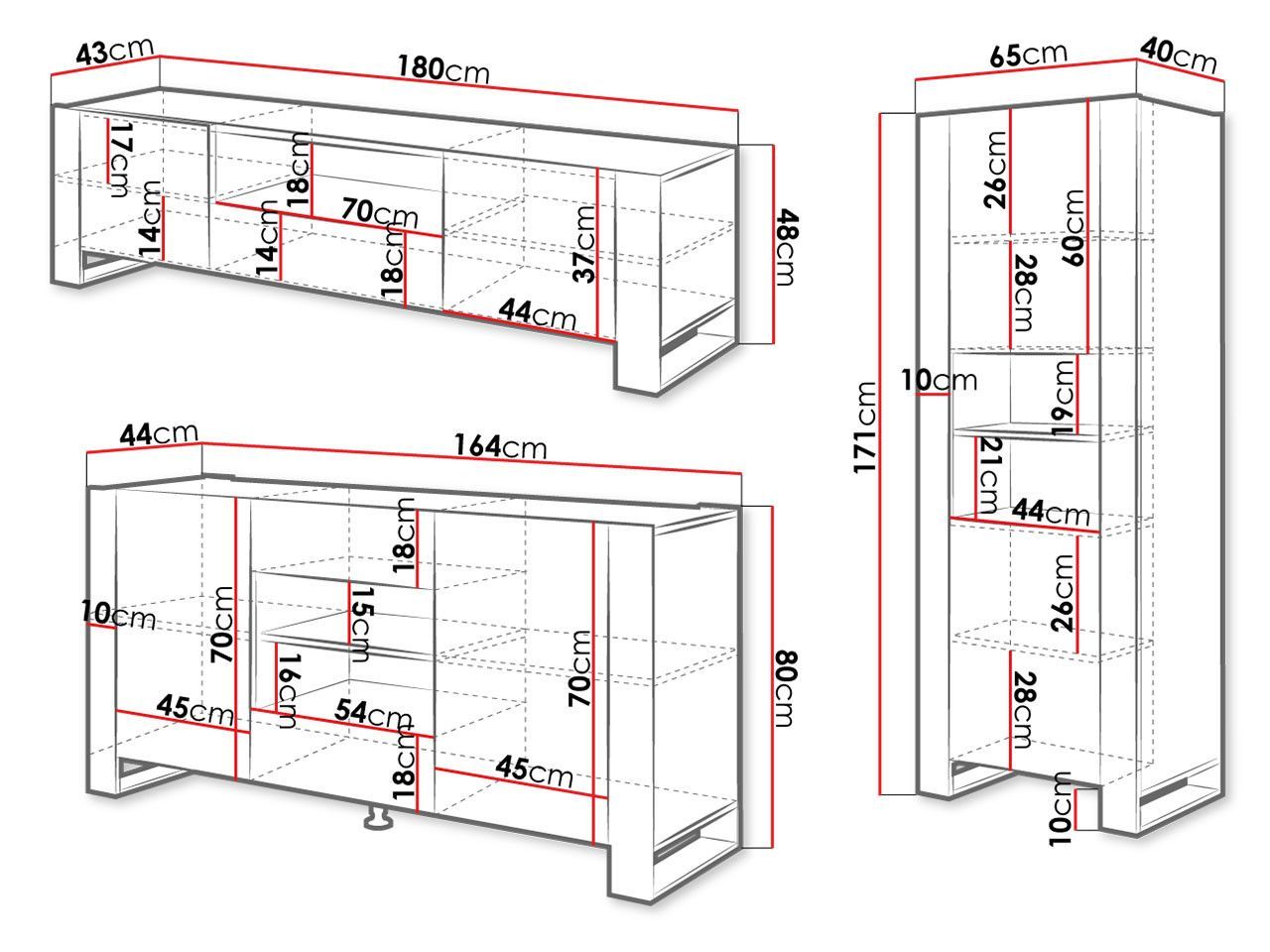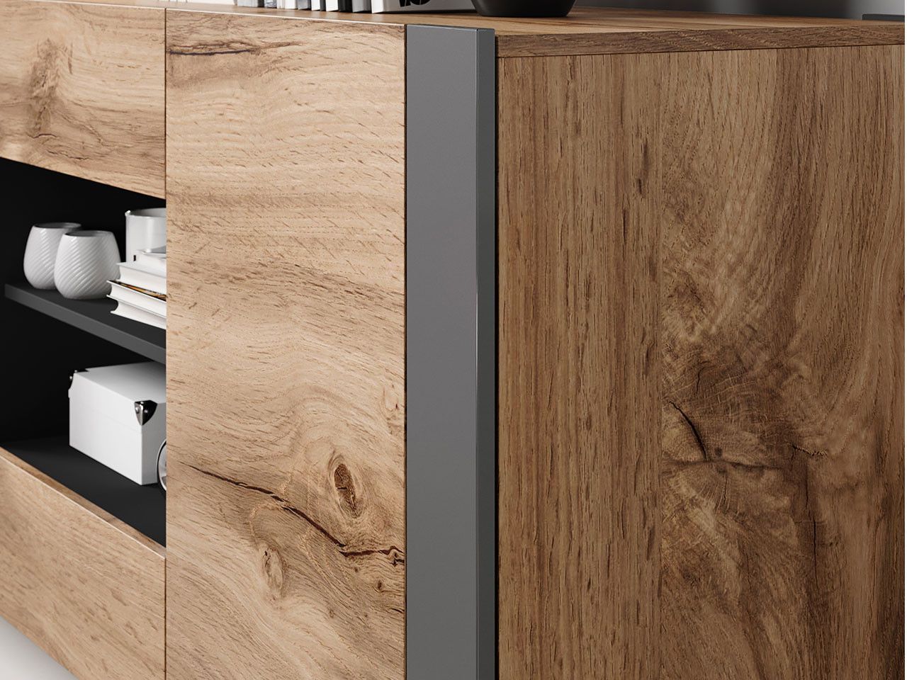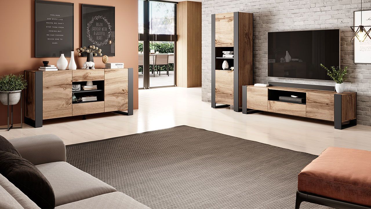 Wohnzimmer-Set Wood I Wohnmöbel Komplett Modern Kommode TV-Lowboard Vitrine M24