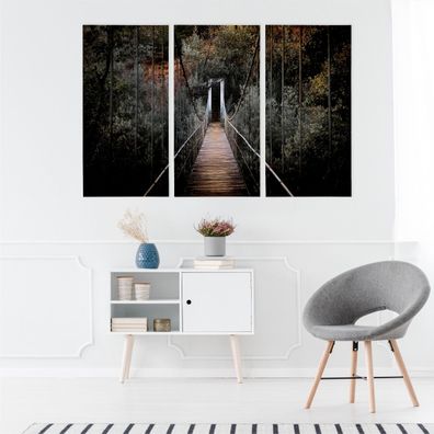• Leinwand Bilder SET 3-Teilig Haengende BRÜCKE Wood Forest Wandbilder xxl 4818