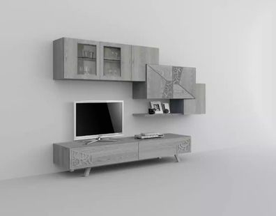 Wohnwand Anbauwand Wohnkombi Wohnzimmer new wood grey