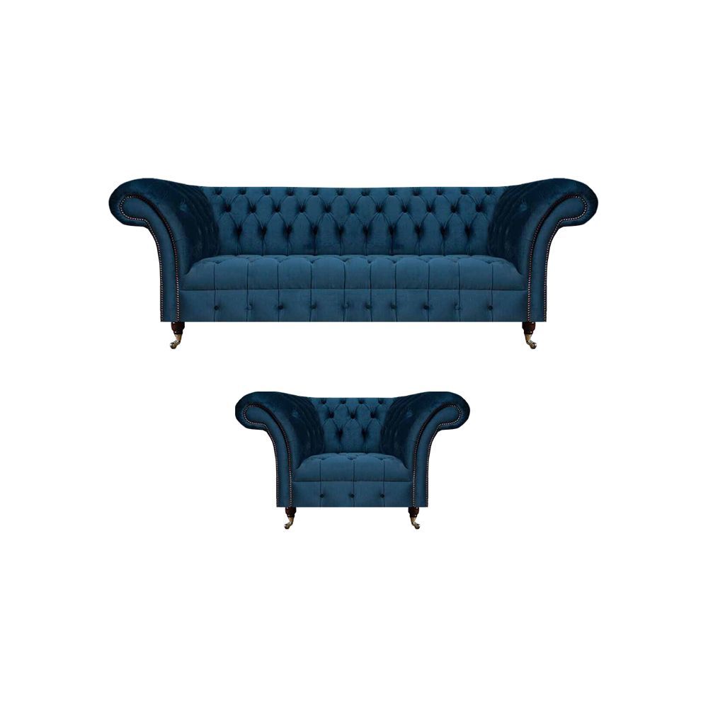 Wohnzimmer Sitzmöbel Blau Sofa Dreisitze Luxus Sessel Möbel Chesterfield