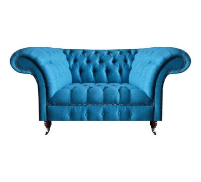 Blauer Chesterfield Textil Zweisitzer Sitzmöbel Designer Edle Sitzsofas