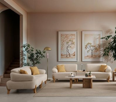 Beige Wohnzimmer Garnitur 2x Sitzsofas Designer Couchtisch 3-tlg
