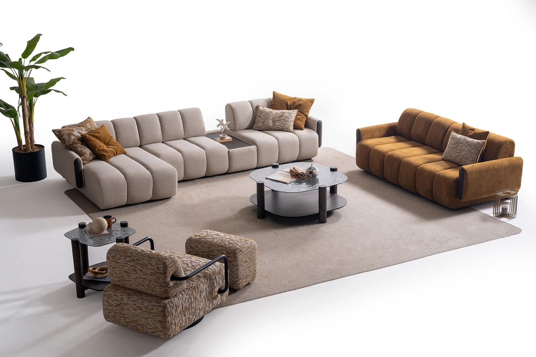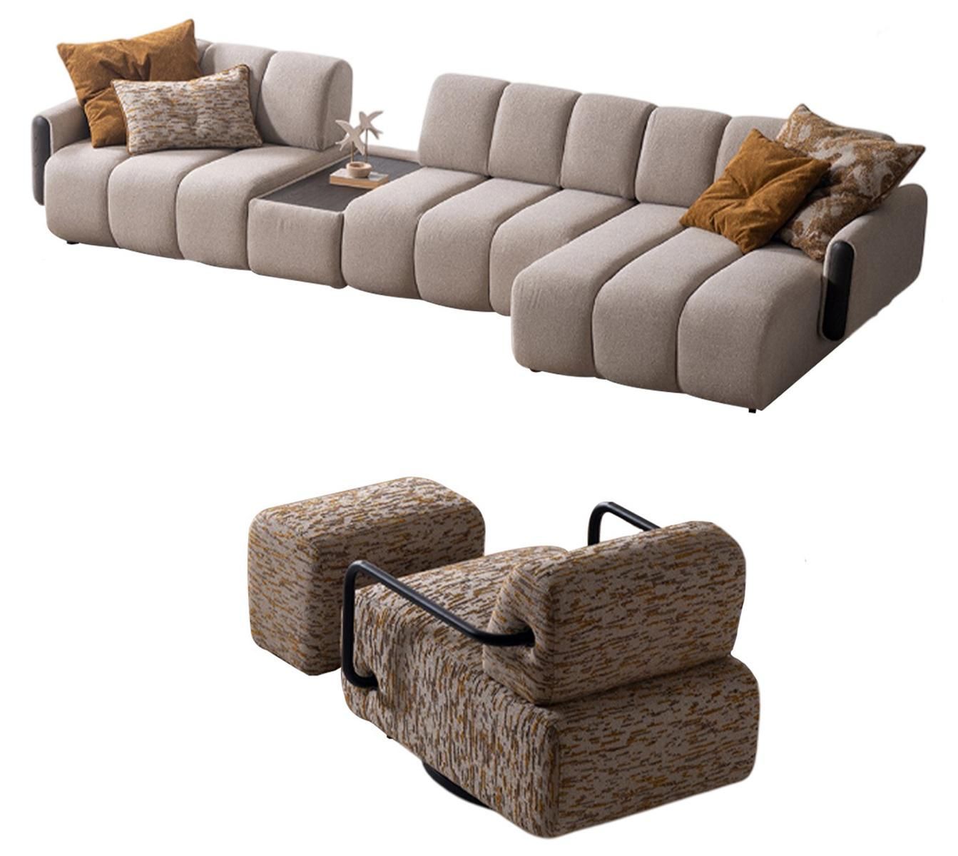 Wohnzimmer Sitzsofas Designer Ecksofa Luxus Sessel Textilhocker